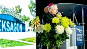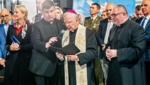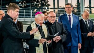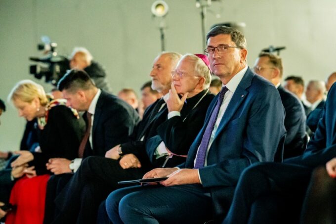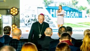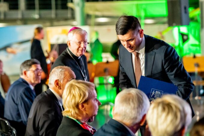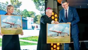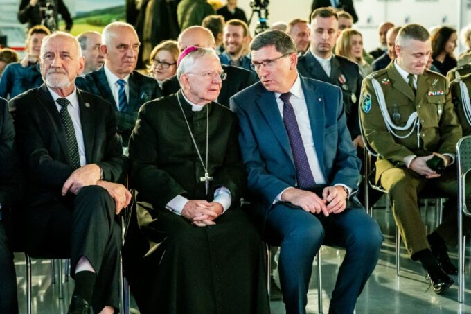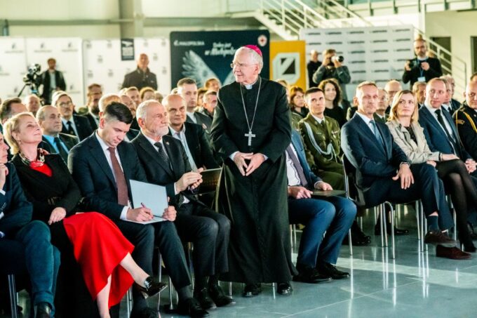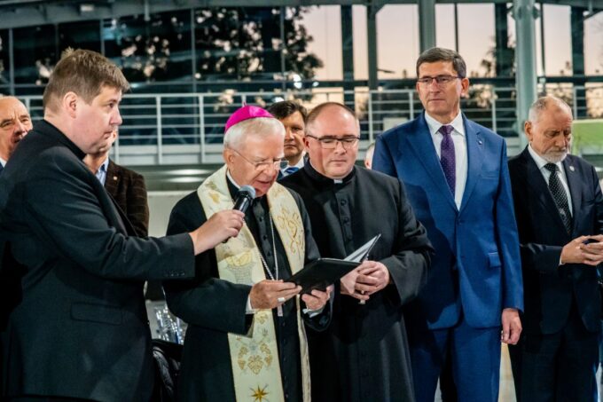 Po wyświetleniu filmu prezentującego kolejne etapy budowy hangaru głos zabrali przedstawiciele Województwa Małopolskiego oraz Arcybiskup Marek Jędraszewski.
