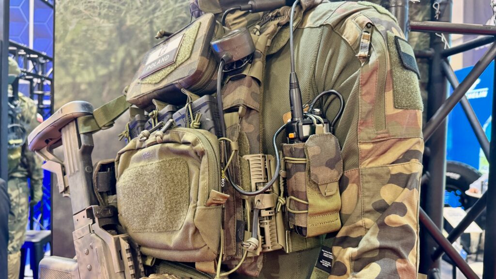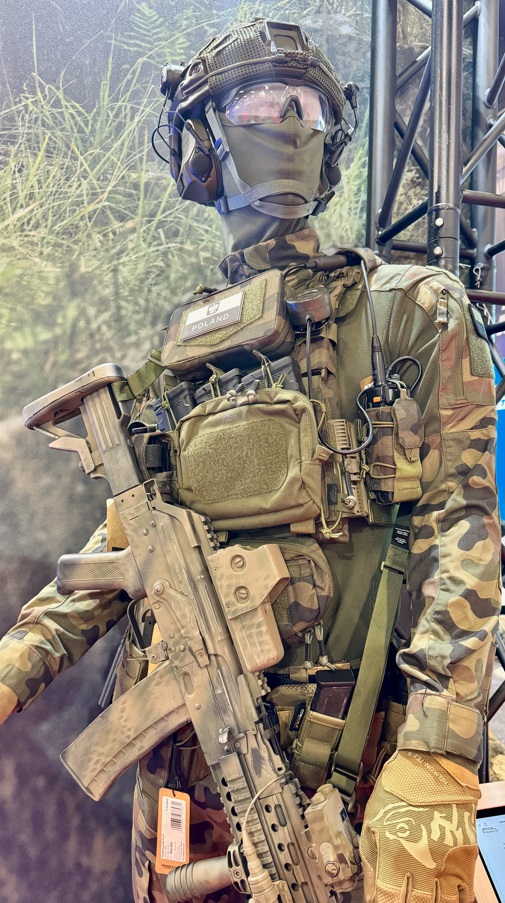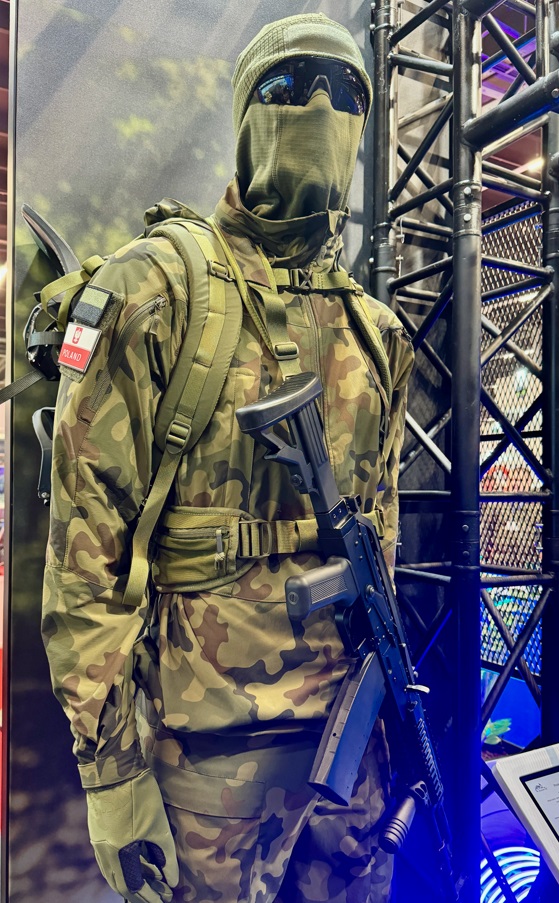 Już przed stoiskiem najbardziej znanego polskiego producenta odzieży paramilitarnej mogliśmy zobaczyć manekina ubranego w umundurowanie i oporządzenie Helikon-Tex (A-31). Jak informuje producent, to zabieg celowy, gdyż uwagę chciano zwrócić na kilka prezentowanych na nim elementów.
