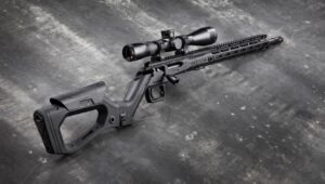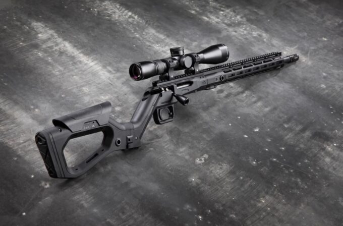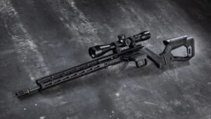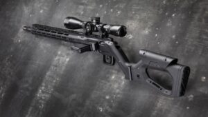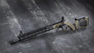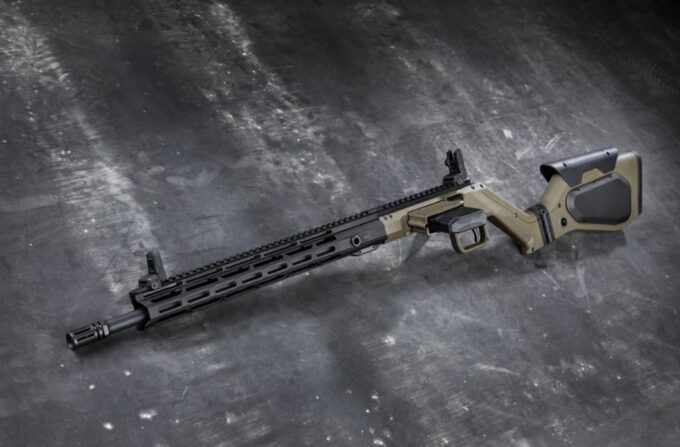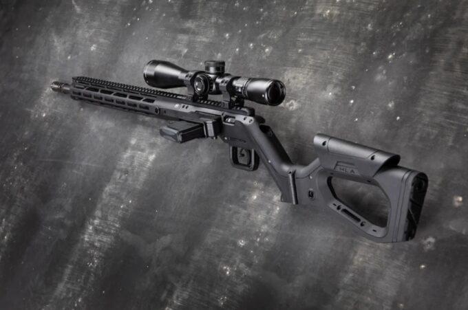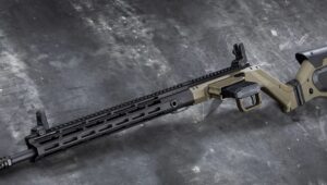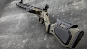 Po lewej stronie komory zamkowej umieszczono gniazdo magazynka standardu AR-15. Rozwiązanie to urozmaica w pewien sposób ergonomię – karabinek usytuować można bardzo blisko podłoża, co ułatwia strzelanie w pozycji leżącej. Można go również wygodniej i pewniej oprzeć np. o plecak lub element środowiska pokroju powalonego drzewa (co docenią myśliwi).