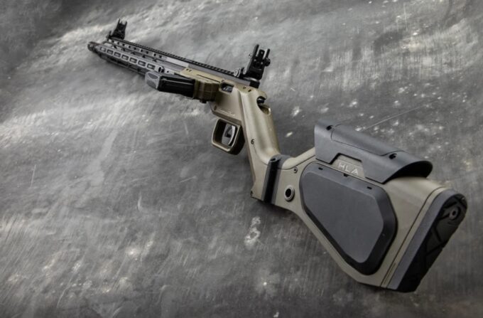 Zamontować można dowolne łoże standardu AR-15. Karabinek wyposażono natomiast w czwartej generacji produkt Hera Arms (nieprzerwana szyna Picatinny na grzbiecie, gniazda M-LOK na godzinie 3, 6 i 9 oraz wykonane ze stali gniazda QD). Odpowiednie spasowanie odcinków szyn Picatinny grzbietu komory zamkowej oraz łoża Hera zapewnia specjalny bloczek.