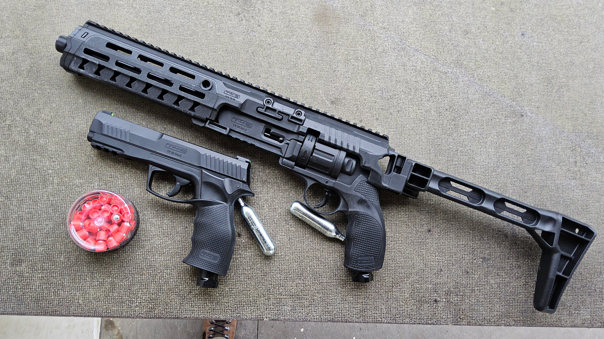 Rozwój technologii doprowadził do powstania nowoczesnych, mocnych i bezpiecznych konstrukcji CO₂, takich jak rewolwer T4E HDR50 oraz pistolet T4E HDP50 RAM, oba o energii 11 J, produkowane przez UMAREX. Są one zasilane 12 g kapsułką CO₂ w rękojeści i przystosowane do strzelania kulami gumowymi i pieprzowymi kalibru 12,7 mm.