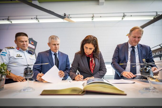 La Ministra de Defensa @riximga, el @JEMCFFAAH, Gral. Roosevelt Hernández, en representación de la Presidenta @XiomaraCastro, y acompañados por la Comisión Técnica, y el @ComandanteFAH, Gral. Guillermo Rosales, firmaron este día la recepción de dos helicópteros Airbus H-145 D3. pic.twitter.com/CkAJSyj1Gu