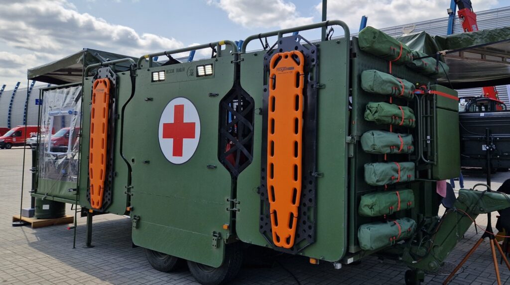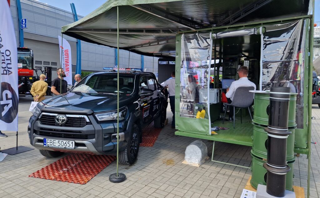 Na stoisku Auto Podlasie, autoryzowanego dealer’a samochodów marki Toyota, zaprezentowano modułowe, wielofunkcyjne przyczepy czeskiej spółki Rescue Trailer. Zaprojektowane na potrzeby wojska, ratownictwa oraz obrony cywilnej, służą do formowania mobilnych punktów pomocy medycznej i nie tylko. Wyposażone we własne, amortyzowane podwozie do transportu w terenie, cechują się modułową konstrukcją oraz możliwością złożenia na czas przechowywania. Czeska spółka oferuje możliwość dostosowania przyczep do indywidualnych wymogów klienta. Jedną z najważniejszych zalet stanowić ma niższy koszt w porównaniu do pozyskania pojazdu ze specjalną zabudową.