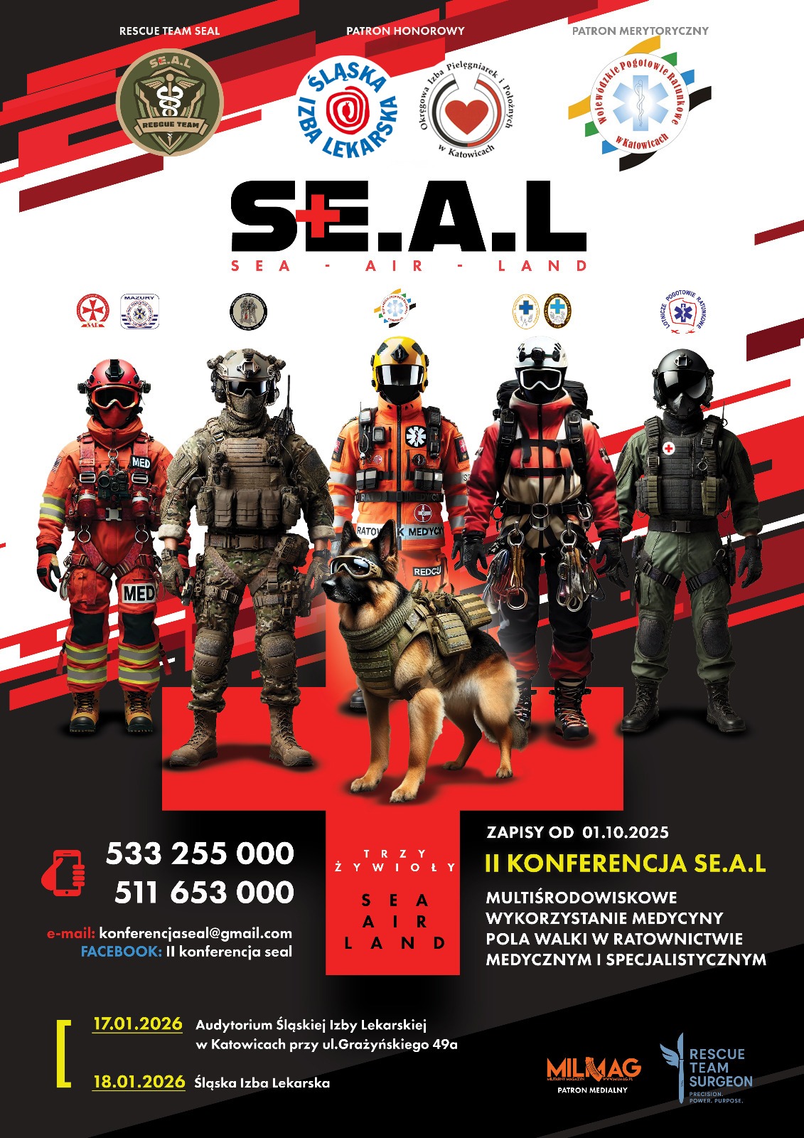Konferencja odbędzie się pod tytułem Multiśrodowiskowe wykorzystanie medycyny pola walki w ratownictwie medycznym i specjalistycznym. Wydarzenie jest organizowane przez wspomniane Rescue Team SE.A.L, a także Wojewódzkie Pogotowie Ratunkowe w Katowicach oraz Śląską Izbę Lekarską.