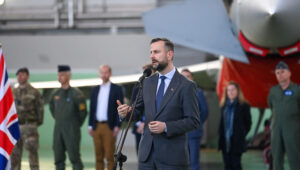 Chciałbym moim przyjaciołom ze Szwecji i z Wielkiej Brytanii serdecznie podziękować za to, że są tutaj, że dedykujecie swoje siły, że dajecie swoich najlepszych ludzi, pilotów, personel obsługi naziemnej, swoich żołnierzy, swoje doświadczenia. Dajecie to dla naszego sojuszniczego wsparcia, dla ochrony naszych wartości, naszego nieba. Potrzebujemy tego, budujemy nowoczesną armię, trwa proces transformacji, kupujemy F-35, wprowadzamy do pełnego użytku samoloty Saab 340B AEW-300, ale to sojusznicze wsparcie jest wyrazem i symbolem solidarności. Dzisiejsza solidarność to jest NATO. Ta solidarność, ten ruch to jest NATO. Polska rozpoczyna dzisiaj też swoją misję. Nasi żołnierze są na Łotwie. Dziś rozpoczynamy misję na Litwie. To jest ta kolektywna obrona i kolektywne odstraszanie – zaznaczył wicepremier Władysław Kosiniak-Kamysz.