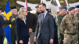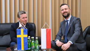 Dziękuję wszystkim żołnierzom, którzy są tutaj obecni. Dziękuję naszym żołnierzom. Dziękuję wszystkim tutaj w bazie, w Malborku (…) za godne przyjęcie naszych sojuszników. Otoczcie ich opieką, otoczcie ich wsparciem. To jest też wyraz naszej polskiej tradycyjnej gościnności, z której jesteśmy słynni na całym świecie. Myślę, że udowodnimy po raz kolejny, że to nie są przysłowia, ale to jest realne działanie. Dla Szwecji po wstąpieniu do NATO właśnie Polska jest tym pierwszym krajem, którą nasi partnerzy, nasi przyjaciele ze Szwecji wybierają do kolektywnej, solidarnej, sojuszniczej obrony i odstraszania. Dziękuję Wam wszystkim, Życzę Wam żołnierskiego szczęścia w tej misji na polskiej ziemi – podkreślił szef MON.