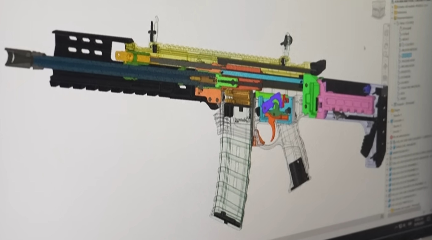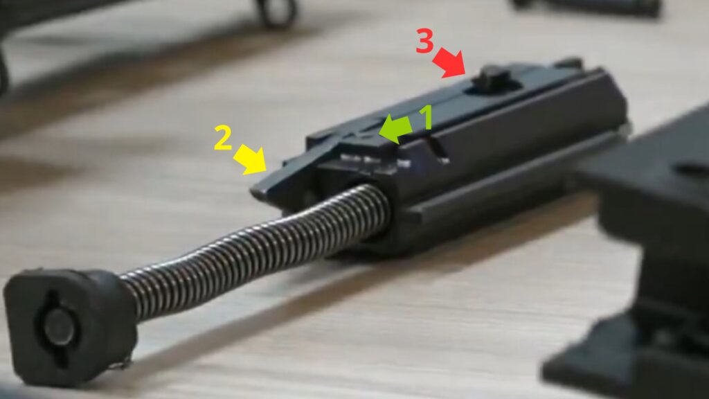 Ostatni wniosek potwierdza wycinek z tego samego materiału, którego użyto do analizy zespołu ruchomego. Wycinek przedstawia dobry wgląd na opory ryglowe – ich rozstawienie sugeruje, że sam zamek najprawdopodobniej nie odbiega zanadto od AR-18, cechując się wieloma mniejszymi (względem np. AK) występami.