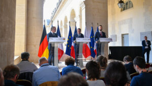 Wznowiona po blisko 10 latach współpraca Berlina, Paryża i Warszawy w ramach Trójkąta Weimarskiego ma także na celu wzmocnienie wspólnego wspierania Ukrainy, wypracowania strategii obrony i odstraszania na wschodniej flance Europy oraz omówienie potencjalnych zagrożeń atakami hybrydowymi poza terytorium Ukrainy (Polska i Niemcy aktywują koalicję zdolności opancerzonych dla Ukrainy).