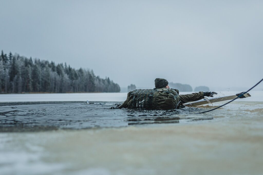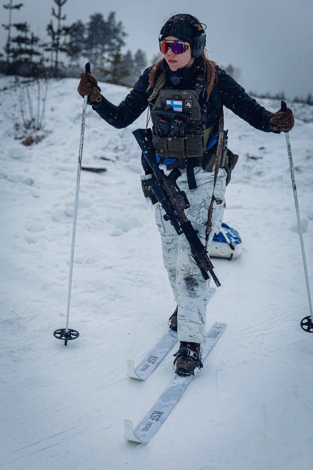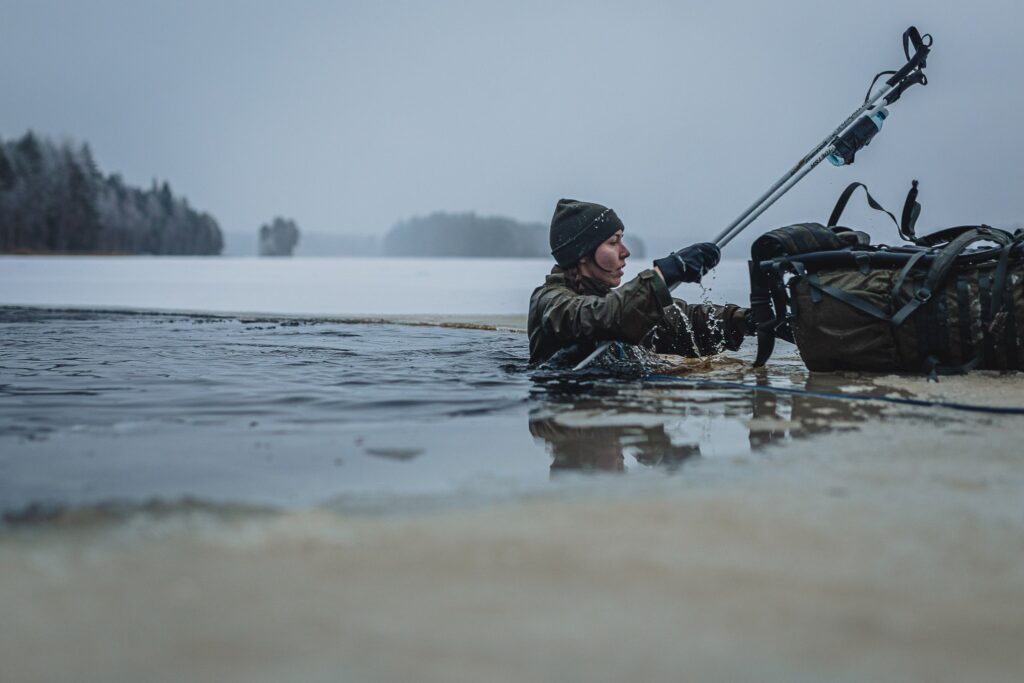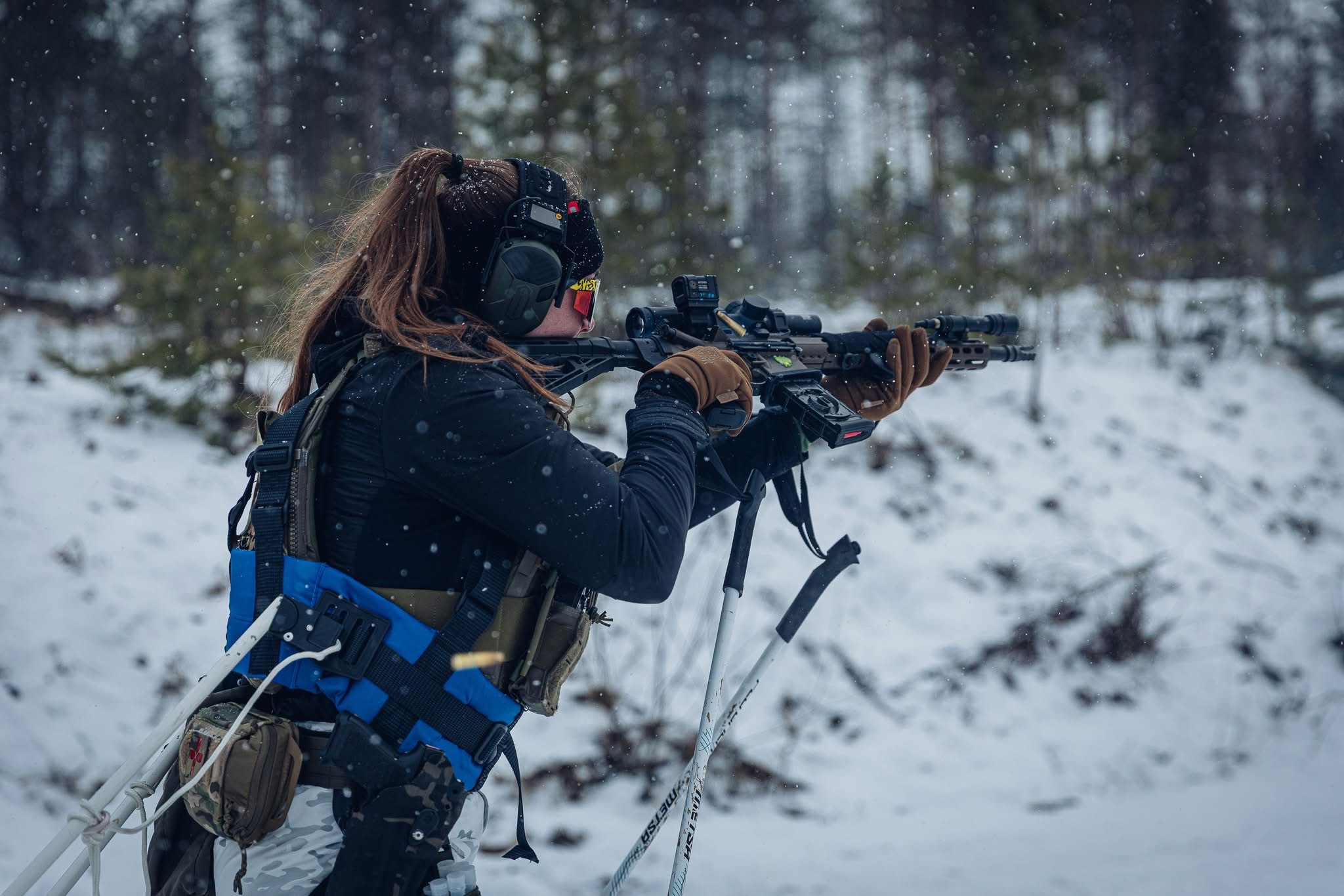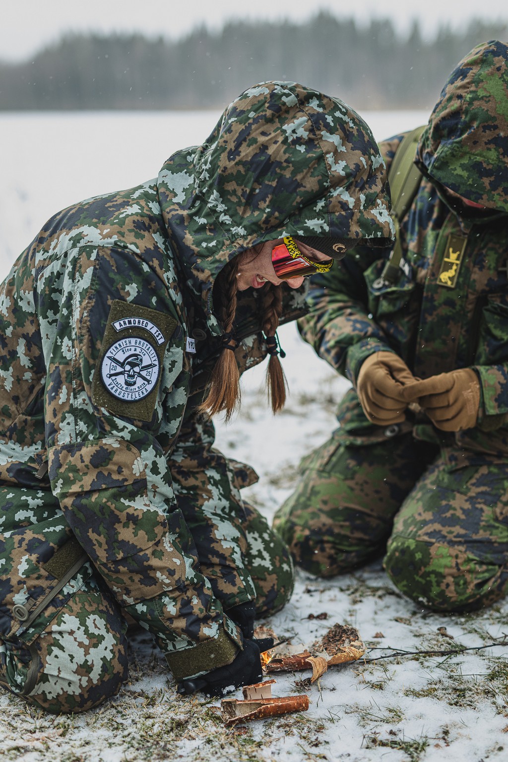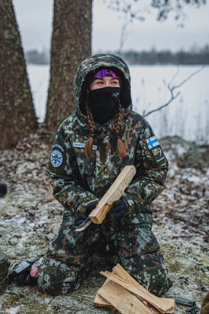 Jakie są warstwy? Zazwyczaj system warstwowy jest stosowany do górnej części ciała, ale tak samo powinniśmy go stosować również do dolnej połowy, a także dla rąk i stóp. Uproszczony system możemy sprowadzić do trzech poziomów. Warstwy bazowej, izolacyjnej i zewnętrznej. Odpowiednio skomponowane powinny zapewnić nam suchość oraz komfort termiczny. Z fińskiego punktu widzenia, opartego na klimacie nordyckim, takich warstw możemy mieć aż siedem. Rozróżniają oni warstwę bazową, warstwę środkową, warstwę izolacyjną, odzież terenową (mundur), powłokę termiczną, powłokę wodoodporną i warstwę maskującą. Tym razem skupimy się jednak na wybranych przeze mnie elementach. Podam wam również przykłady odzieży i obuwia, których używałam podczas Finnish Brutality i które znakomicie się sprawdziły. Głównie marek Carinthia, Varusteleka i Lowa. Dlaczego? Dlatego, że wspominane marki zdecydowanie przodują w projektowaniu odzieży przeznaczonej do ekstremalnych i zimowych warunków. Łączą lekkość, wytrzymałość, doskonałe materiały i innowację z praktycznymi rozwiązaniami idealnymi dla wymagających strzelców i nie tylko. Do tego zwrócę uwagę na materiały, które warto wybrać, budując swój system odzieży.