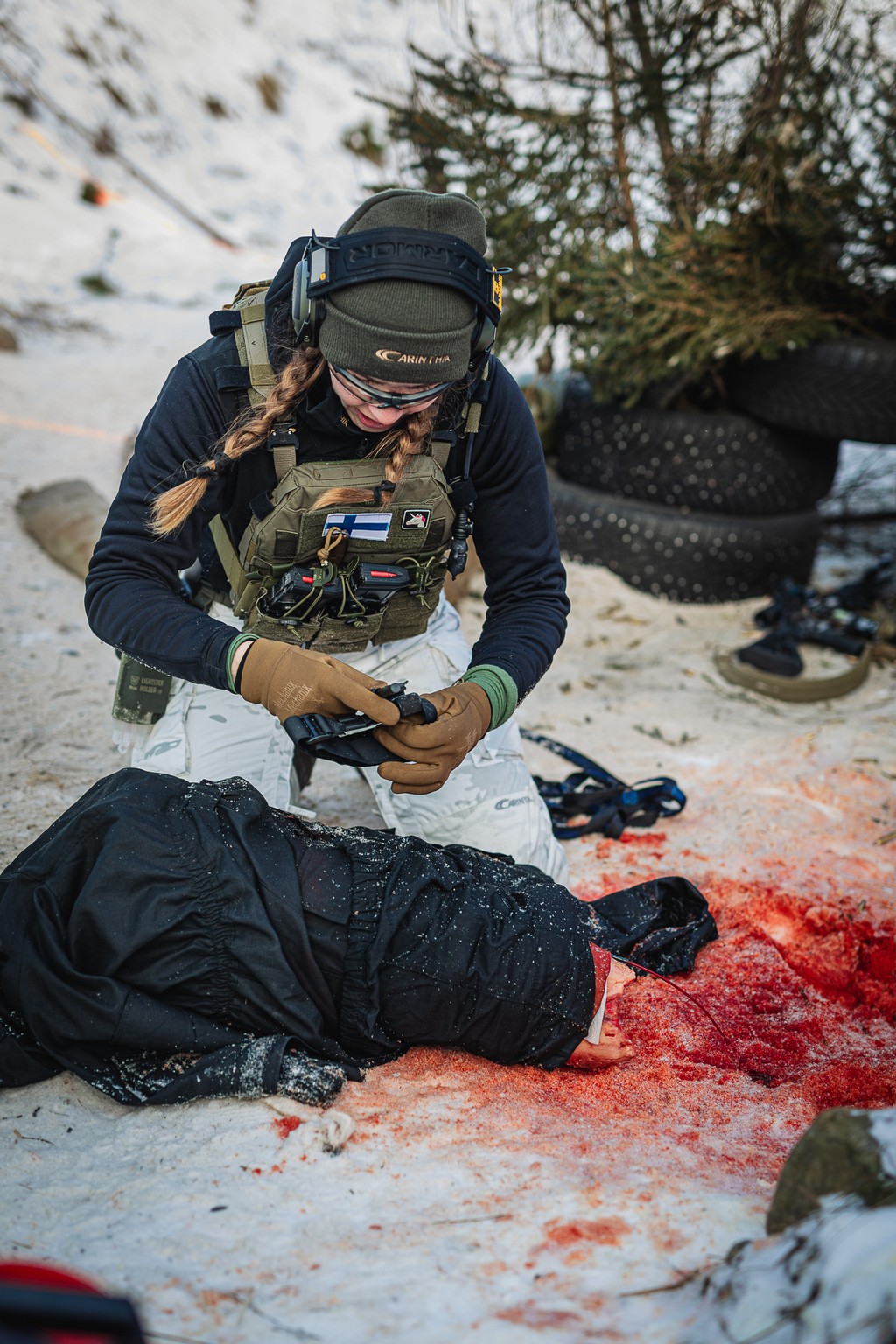 Finowie są mistrzami, jeśli chodzi o funkcjonowanie w ekstremalnie zimowych warunkach. Aby zrozumieć, jak poprawnie przygotować się do treningu na zewnątrz, należy wziąć pod uwagę dwa rodzaje zimna – suche i mokre. Zimno suche występuje przy niskiej wilgotności powietrza, przy temperaturach od -20 stopni Celsjusza w dół. Ten rodzaj zimna może być odczuwalny jako mniej dotkliwy, gdyż suche powietrze nie przewodzi ciepła tak efektownie jak wilgotne. Właśnie z takimi warunkami przyszło nam pracować na wspomnianych zawodach. Przy wyższej wilgotności, często w okolicach 0 stopni do kilku stopni poniżej zera, spotykamy się z zimnem mokrym, które najczęściej spotykamy w naszym polskim klimacie, np. podczas opadów śniegu z deszczem. Temperatura złudnie jest wyższa niż przy suchej odmianie, jednak uczucie zimna jest znacznie bardziej przenikliwe – wilgoć w powietrzu i ubraniach przewodzi chłód do ciała, co powoduje szybsze wychłodzenie.