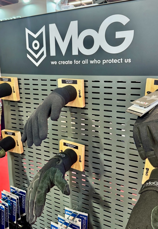 Duże stoisko firmowe podzielone było strefy, w których prezentowano różne grupy produktów. W pierwszej strefie umieszczono dodatkowe wyposażenie różnego rodzaju wozów bojowych, a więc na przykład apteczki IFAK na zagłówki, organizery z uchwytami na broń na tyły foteli samochodowych, itp.