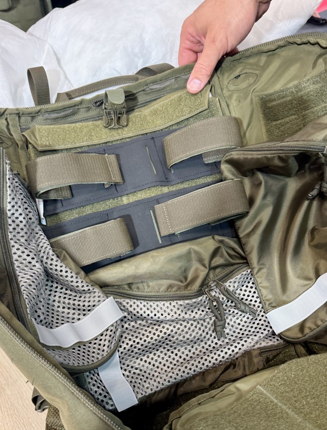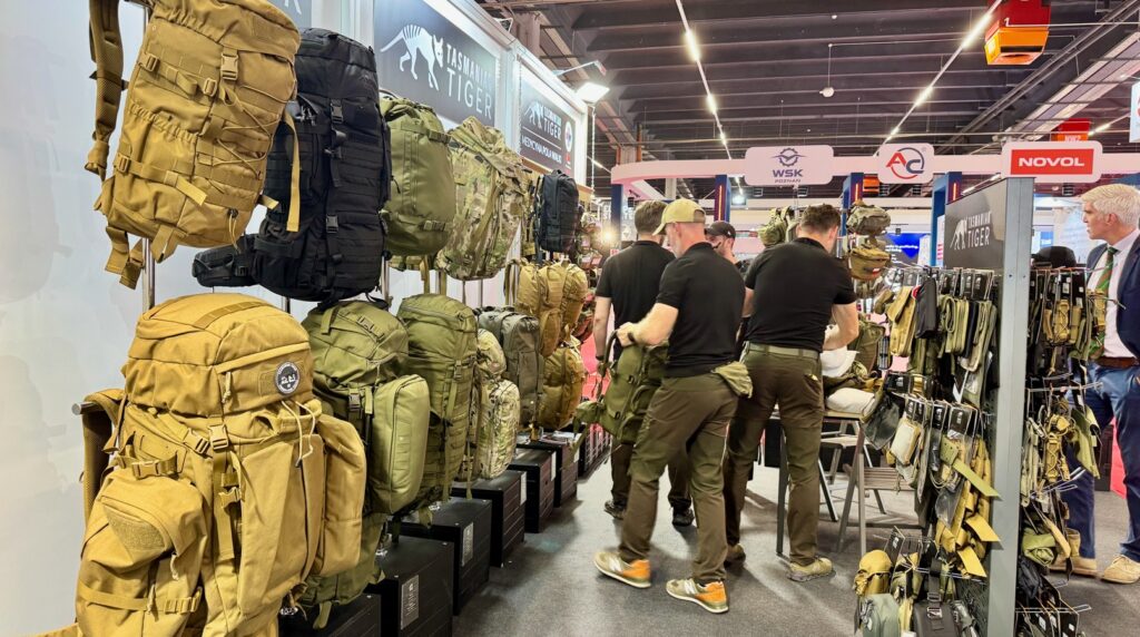 Kolejna duża strefa, gdzie dominowały produkty Tasmanian Tiger to strefa plecaków i toreb. Zaprezentowano różnego rodzaju, wielkości i przeznaczenia plecaki, także takie, które wewnątrz wyposażone były w modułową zabudowę ułatwiającą utrzymanie porządku i szybkie odnalezienie szukanego w nich przedmiotu.