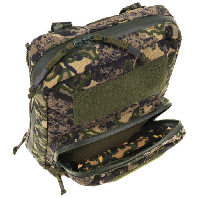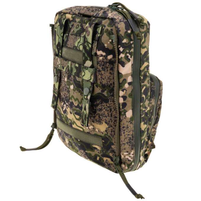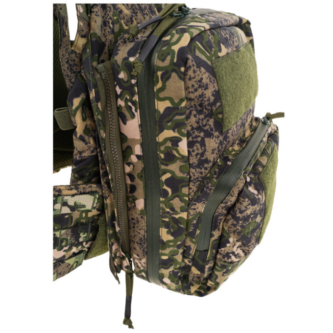 Całe poszycie pokryte jest taśmami w kamuflażu systemem Molle, co pozwala na dowolną konfigurację.