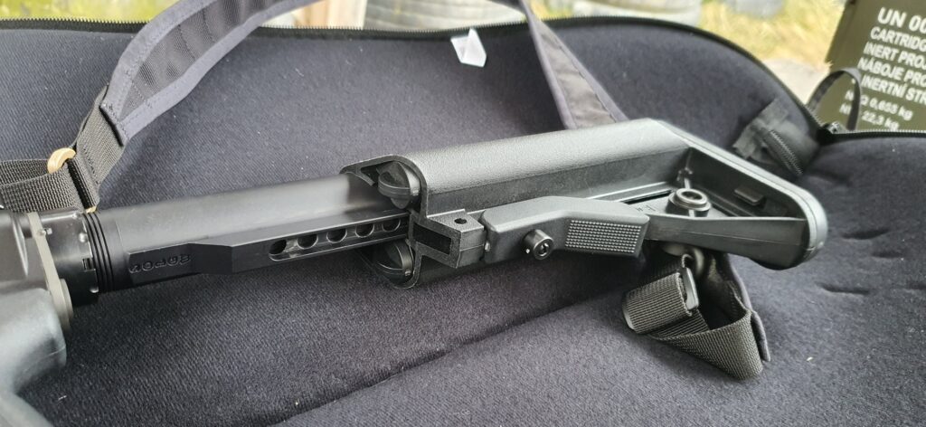 - buffer tube oraz mechanizm powrotny typu A5 — dłuższy od standardowego, zapewniający w teorii lepsze zbalansowanie pracy mechanizmów,