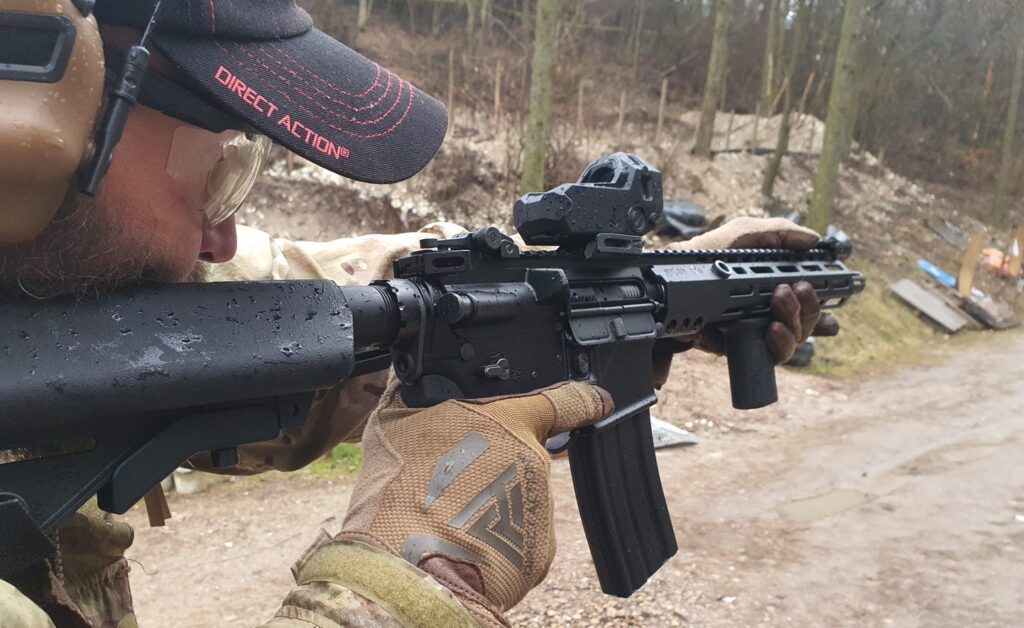 Pod kątem ergonomii, zastosowanie chwytu B5 systems P-Grip o nachyleniu 13 stopni pozwala na dużo bardziej naturalne ustawienie dłoni na chwycie. Nadgarstek jest bardziej wyprostowany, co zmniejsza napięcie mięśni przedramienia podczas trzymania karabinka. Luźniejszy chwyt podczas długotrwałej pracy na broni jest kluczowy, aby wykonywać z pełna prędkością czynności manualne, czy żeby z pełną kontrolą ściągać palec na języku spustowym. Z kolei kolba B5 systems Bravo z poszerzonym podparciem pod policzek układa się na szczęce zgodnie z krzywizną żuchwy. To oznacza, że po dostawieniu się do karabinu podczas strzelania zyskujemy lepszą kontrolę podrzutu i odrzutu.