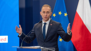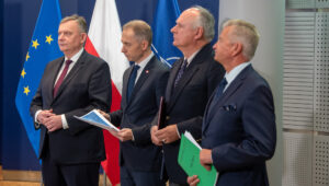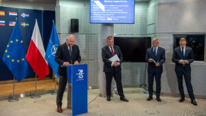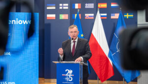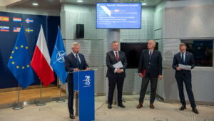 Żyjemy w niebezpiecznych czasach, to wszyscy wiemy. Polityka, którą prowadzimy, aby Polska była bezpieczna i rozwijała się pokojowo, aby nikt nam nie zagroził, jest polityka odstraszania. Jej kluczowym elementem jest transformacja i modernizacja sił zbrojnych, ale bardzo ważnym elementem jest wzmocnienie sojuszów, które mamy. Przede wszystkim NATO, ale także Unia Europejska w tym odgrywa bardzo istotną rolę i muszę powiedzieć, że jeżeli mówimy dzisiaj o „dziurze Błaszczaka”, to ona występowała też w relacjach z naszymi sojusznikami. To jest kwestia tak naprawdę braku zaufania do Polski. Pamiętamy ten skandaliczny rajd na Centrum Eksperckie Kontrwywiadu NATO, który bardzo poważnie podważył naszą wiarygodność. (…) Chciałem powiedzieć o szczycie w Waszyngtonie, na którym był pan premier Kosiniak-Kamysz, ja również byłem członkiem delegacji. Muszę powiedzieć, że osiągnięcia tego szczytu są naszym bardzo poważnym osiągnięciem. Podtrzymaliśmy i wzmocniliśmy wspólną ocenę sojuszniczą, jeżeli chodzi o zagrożenie ze strony Rosji, ale także na różnego rodzaju działania hybrydowe, także te na naszej granicy. Jeżeli chodzi o wzmocnienie w sojuszy, no to przede wszystkim wzmocnienie naszych relacji ze Stanami Zjednoczonymi. Pokazują je nie tylko kontrakty zbrojeniowe, ale także obecność sił amerykańskich w Polsce. (…) To także wzmacnianie współpracy w ramach Trójkąta Weimarskiego. Współpraca z Niemcami, z Francją, z Wielką Brytanią, z Włochami z innymi państwami to jest dla nas podstawa bezpieczeństwa, także obok tych relacji kluczowych ze Stanami Zjednoczonymi. Współpracujemy doskonale z państwami bałtyckimi. Szwecja jest naszym bardzo ważnym partnerem. (…) Kontynuujemy również nasze wsparcie dla Ukrainy, w każdym możliwym wymiarze. To już między innymi 20 000 ukraińskich żołnierzy wyszkolonych w ramach unijnego programu szkolenia. To jest największa liczba żołnierzy ukraińskich właśnie wyszkolonych w Unii Europejskiej – podkreślił sekretarz stanu w MON Paweł Zalewski.