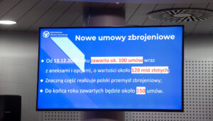 Jedna z ważniejszych umów, to umowa na 96 śmigłowców uderzeniowych AH-64 Apache. Te umowy, które trwały były naprawdę bardzo trudne, dlatego że Stany Zjednoczone Ameryki nie chciały zgodzić się na nasze warunki, jeżeli chodzi o offset i trzeba było naprawdę dobrze z nimi to wynegocjować, żeby podpisać później umowę już na 96 śmigłowców. Chcę tylko przypomnieć, że dzięki temu offsetowi Polska będzie miała możliwość serwisowania tych śmigłowców, ale także innych śmigłowców, również z innych państw. (…) Kolejny kontrakt to aerostaty Barbara. Nie muszę państwu przypominać, jak bardzo ważne jest to, abyśmy mieli swoje oczy, szczególnie skierowane na wschód. 6000 granatników Carl Gustaf – doskonały sprzęt ze Szwecji, 400 pocisków JASSM-ER, 286 lekkich opancerzonych transporterów rozpoznawczych Kleszcz, czyli AMZ Kutno – nasz przemysł zbrojeniowy, polski przemysł zbrojeniowy, 13 zestawów BSP FlyeEye, też nasz przemysł zbrojeniowy, 58 sztuk KTO Rosomak z wieżą ZSSW-30, 58 sztuk, to też nasz przemysł zbrojeniowy. Kilkaset tysięcy sztuk amunicji artyleryjskiej kalibru 155 mm, ale nie tylko. Również 24 stacje radiolokacyjne, 198 podwozi Jelcz dla wieloprowadnicowych wyrzutni rakiet Homar-K. Cały ten sprzęt, który jest sprowadzony z zagranicy, te umowy, które wcześniej też były podpisywane przez ministra Błaszczaka, my je w tej chwili polonizujemy i dajemy jak najwięcej sprzętu polskiego. System IBCS, to są oczy i uszy programu Wisła. Optoelektronika – kilka tysięcy gogli noktowizyjnych, umowa na 72 wyrzutnie Homar-K. I kolejna dobra wiadomość z Korei Południowej – została podpisana umowa między firmą WB Electronics a Koreą Południową na budowę fabryki amunicji rakietowych, między innymi do Homara-K. Będziemy mieli takie zdolności produkcyjne w Polsce. (…) My stawiamy znak równości między państwowym przemysłem zbrojeniowym a prywatnym przemysłem zbrojeniowym. Cieszymy się, jeżeli polski prywatny i państwowy przemysł rozwija swoje zdolności produkcyjne i na pewno będziemy ten kierunek wspierali – zaznaczył sekretarz stanu w MON Paweł Bejda.