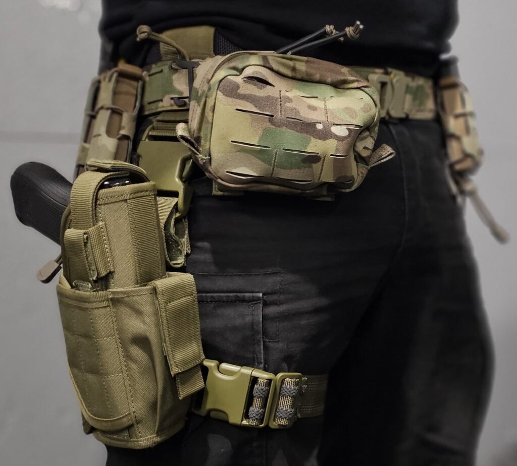 Ewolucja naszego hobby, w którym pojawia się więcej rodzajów broni, powinna pociągnąć za sobą rozwój naszych umiejętności. Rozwój umiejętności pozwala nam na używanie większej ilości sprzętu na jednym treningu, czy innych zajęciach strzeleckich. Anatomia wyposażyła nas w jedynie dwie chwytne kończyny, tak wiem, że są spece co i stopami potrafią, ale uogólniam 🙂 Co za tym idzie mamy ograniczone możliwości noszenia sprzętu za sobą. Stąd koncepcja noszenia szpeju na przykład na pasie.