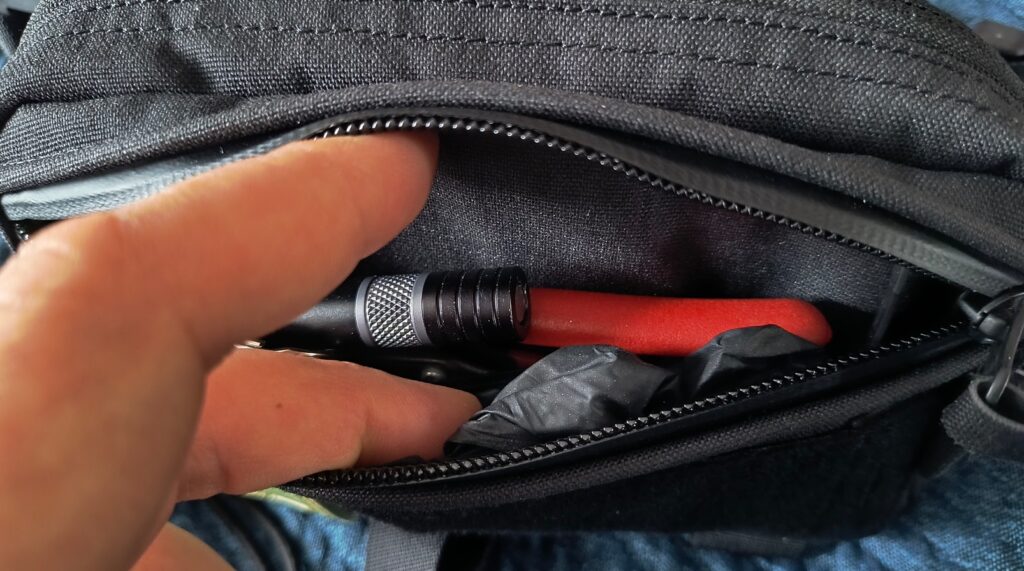 Jako że na zajęciach na strzelnicy przydają się różne niewielkie przedmioty, jak timer czy scyzoryk, to warto mieć dodatkową kieszeń pod ręką.