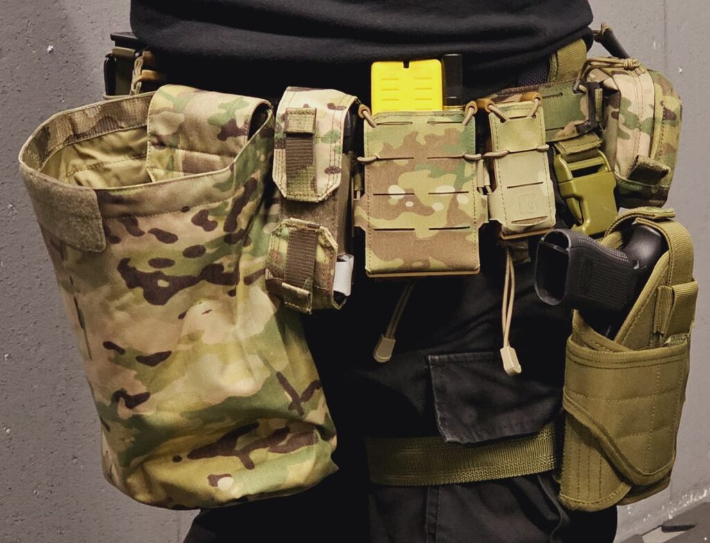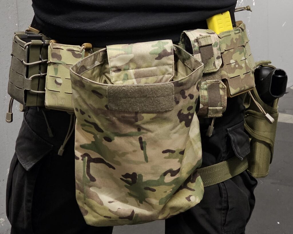 Claw Gear Dump Pouch Core. Składany worek zrzutowy. Rozmiar w sam raz, żeby pomieścić wszystkie 8 magazynków, które mogłem przenosić na pasie w stworzonej konfiguracji.