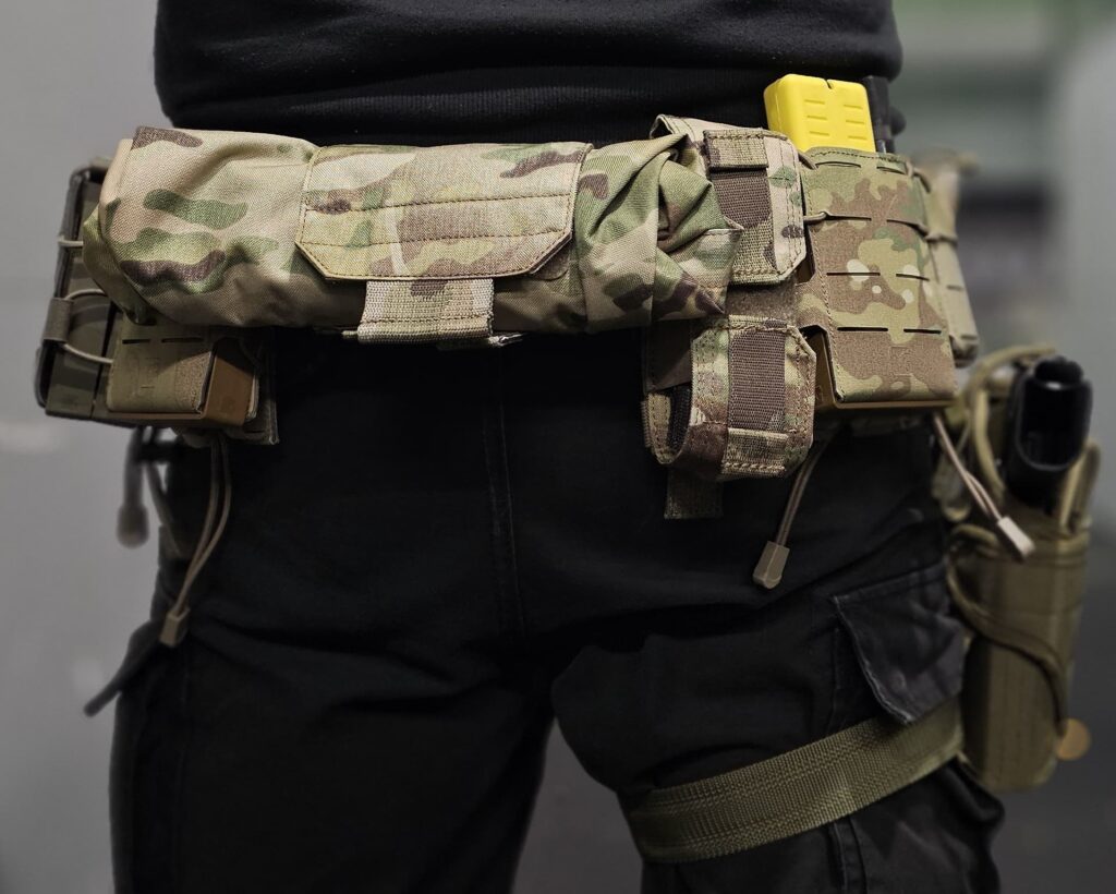 Całość wyposażenia zamontowana na pasie prezentuje się dość ciasno.