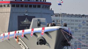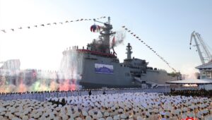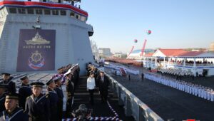 Przypomnijmy, że budowa okrętu została ujawniona 119 dni temu, a więc 29 grudnia 2024, podczas wizyty Kim Dzong Una we wspomnianej stoczni i była ona już zaawansowana rzecz jasna. Kolejna wizyta gospodarska miała miejsce 8 marca br.