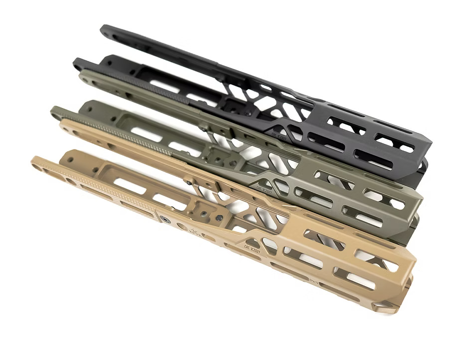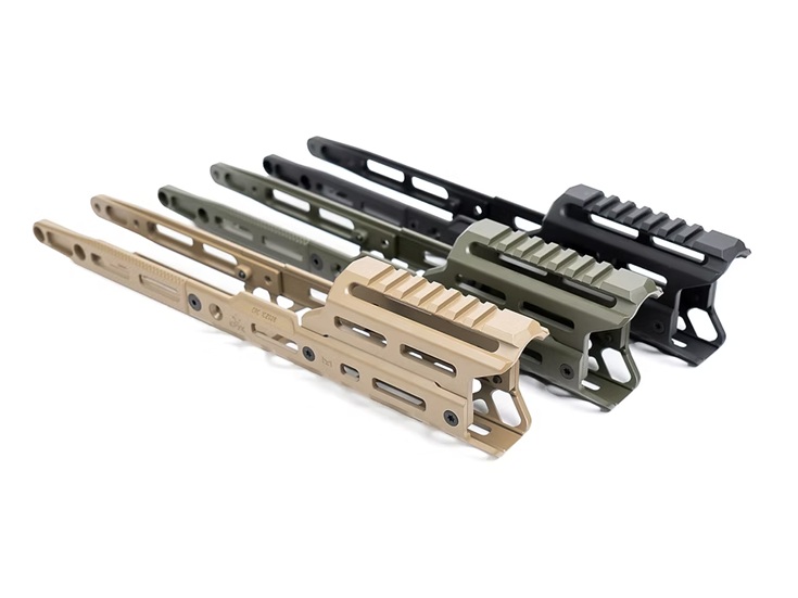 Występujące w dwóch rodzajach łoża zapewniają użytkownikowi jeszcze większą powierzchnię montażową, zarazem zwiększając również ergonomię. O ile szyny Picatinny to rozwiązanie wysoce wytrzymałe, sprawdzone i pewne, tak nie należy do najwygodniejszych dla dłoni. System M-LOK, wprowadzony na rynek przez Magpul Industries, szybko zdobył rynek i uznanie, pozytywnie przechodząc także ciężkie testy USSOCOM. Otwory montażowe pozbawiają łoże ostrych krawędzi i redukują „profil” karabinka, eliminując potencjalne punkty zaczepienia o otoczenie lub elementy oporządzenia. Łoża wykraczają daleko poza obrys komory zamkowej, zakrywając lufę niemalże aż do samego urządzenia wylotowego. Dzięki temu zwiększona została powierzchnia montażowa, a użytkownik może z kolei zastosować dłuższy, „sportowy” chwyt, popularny wśród wielu strzelców. Zasłonięcie lufy chroni także przed poparzeniem oraz umożliwia wygodniejsze podparcie karabinka bez ryzyka odgięcia lufy.
