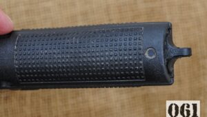 Szkielet na chwycie posiada unikalne sygnowanie dla armii brytyjskiej: L131-A1 i dodatkowo kod NSN – 1005-41-002-1014. Kod NSN (NATO Stock Number / National Stock Number) to podstawa w NATO i praktycznie każdy element wyposażenia taki kod ma nadany.