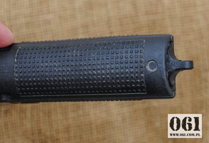 W odróżnieniu od cywilnych pistolet wyposażony jest dodatkowo w ucho do smyczy oraz