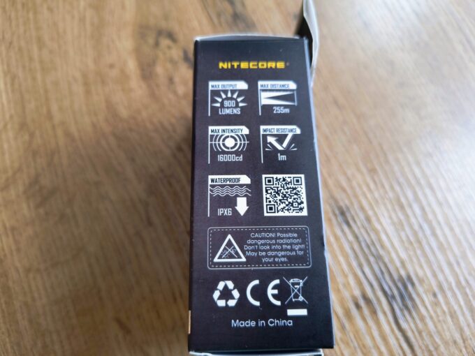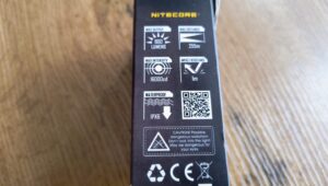 Poza napisami na pudełku, w którym otrzymujemy Nitecore NPL25, mamy jego zawartość. Stanowi ją latarka z ogniwem, kabel do ładowania, instrukcja obsługi oraz kluczyk z adapterem.