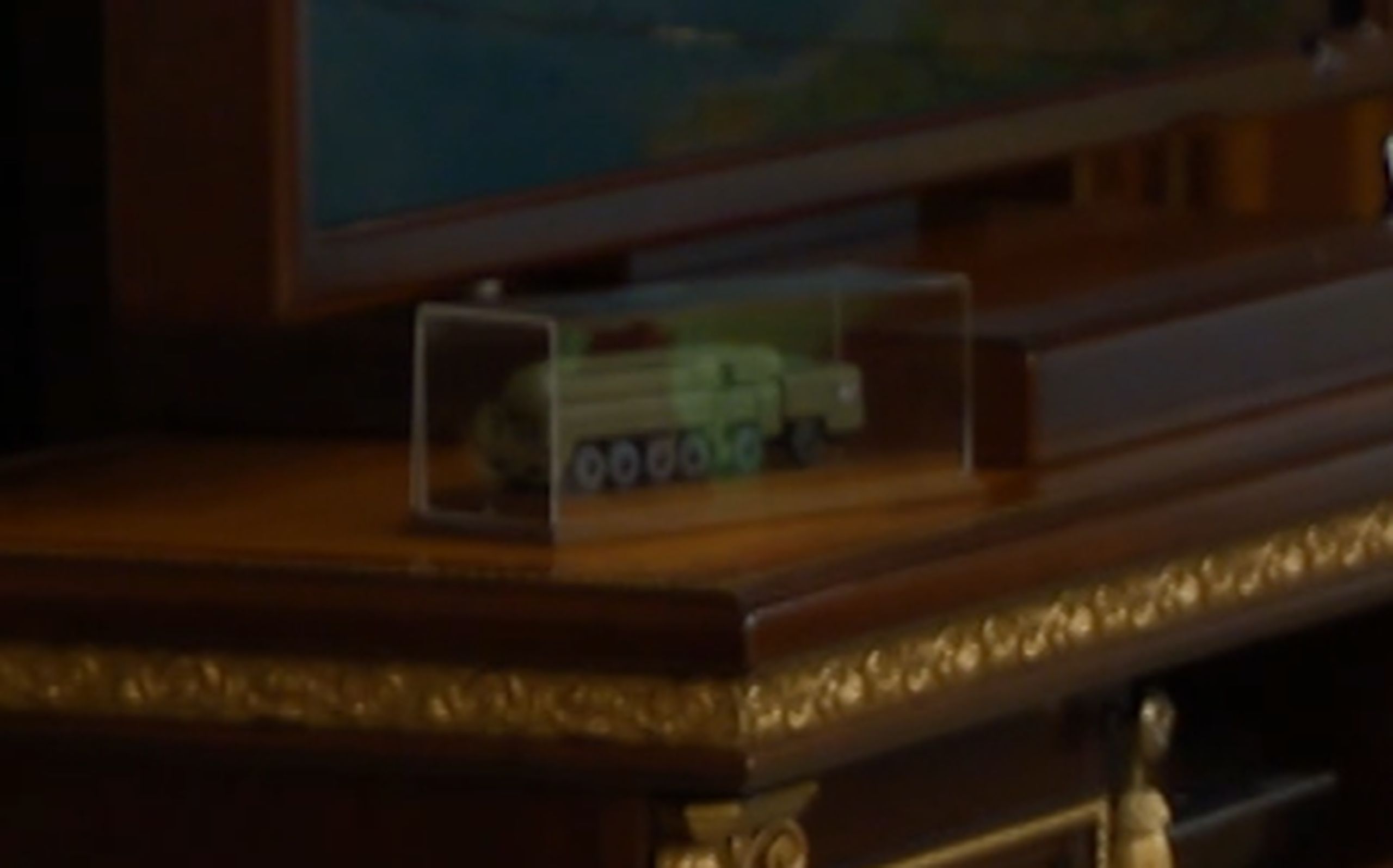 Tym modelem jest prawdopodobnie mobilna wyrzutnia rakietowa (wyrzutnia-transporter) klasy TEL (Transporter-Erector Launcher) dla najnowszego rosyjskiego pocisku balistycznego pośredniego zasięgu Oriesznik (ros. Leszczyna). Łukaszenka otrzymał model prawdopodobnie od prezydenta Rosji Władimira Putina 6 grudnia 2024, gdy w Mińsku odbyło się posiedzenie Rady Najwyższej Państwa Związkowego Rosji i Białorusi (ZRiB), podczas którego Moskwa udzieliła kolejnych gwarancji bezpieczeństwa temu drugiemu i ogłosiła, że w drugiej połowie 2025 na terytorium Białorusi zostaną rozmieszczone pociski Oriesznik.