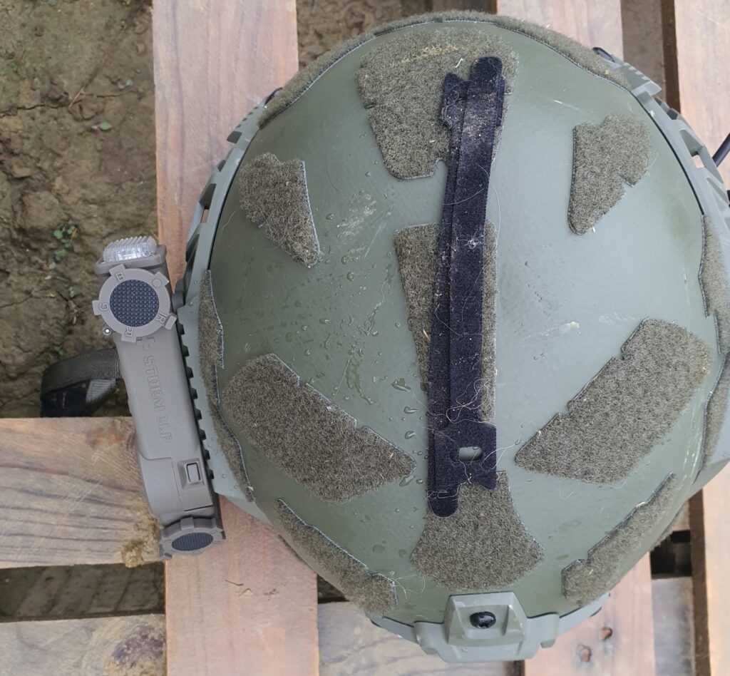 Chcąc korzystać z tej latarki, musiałem pozbyć się montażu słuchawek strzeleckich na szynę, jednakże producent zaprojektował do zestawu uchwyt na rzep, który można przypiąć do hełmu. Rozwiązanie doskonale się sprawdza, jeśli chcemy doraźnie doświetlić teren podczas bardziej statycznej pracy – bez zbędnego marnowania czasu na odnalezienie miejsca wpięcia, po prostu przykładamy latarkę do pasa z rzepem. Jednakże sam nie korzystałbym z uchwytu rzepowego podczas dynamicznej pracy w terenie.