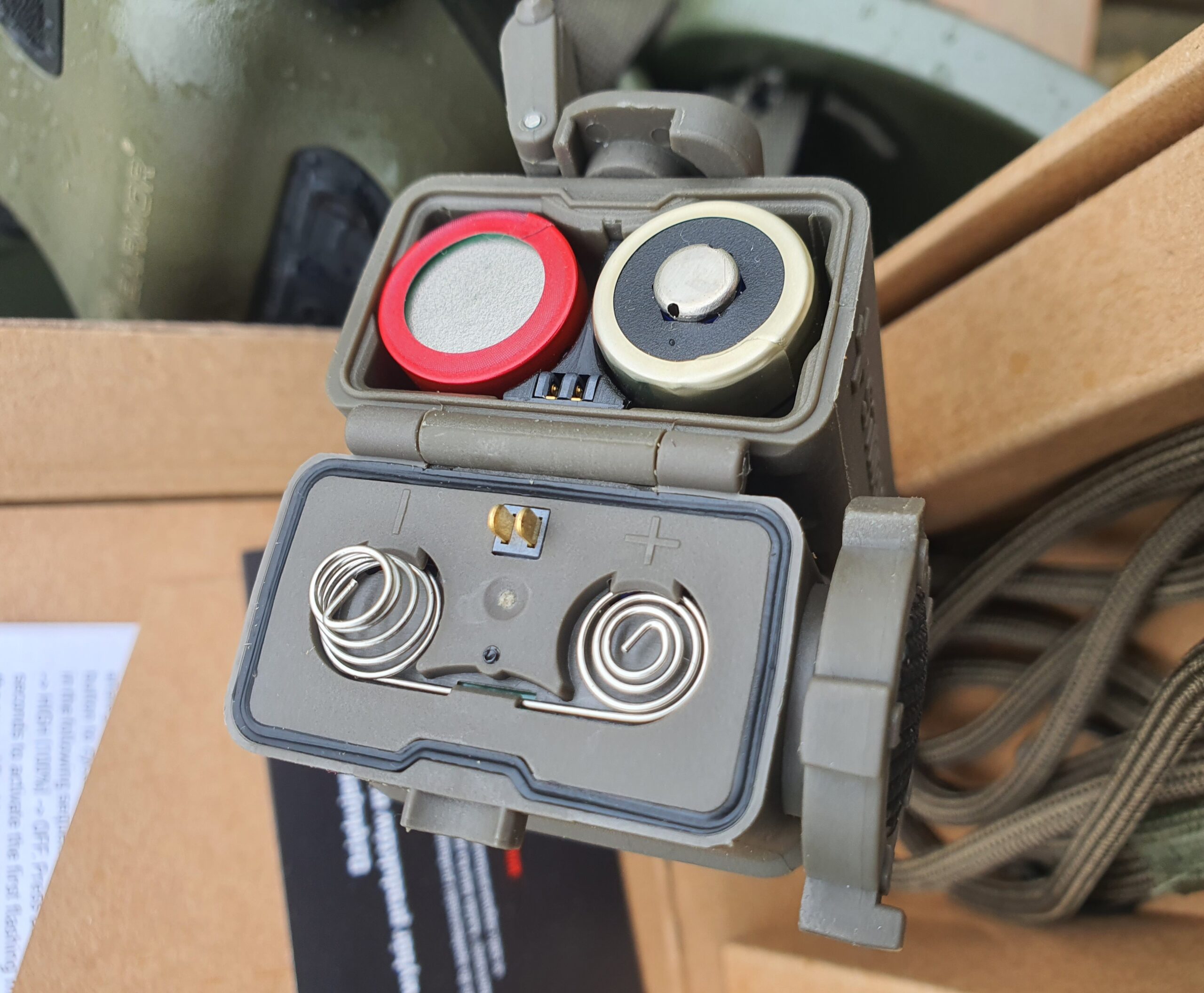 Po otwarciu latarki należy użyć dwóch źródeł zasilania – baterii CR123A. W pokrywie mocno odstają sprężyny, więc nawet po ciemku łatwo odróżnić, w którym gnieździe umieścić baterie biegunem + lub -. W pokrywie zamontowana jest gumowa uszczelka zabezpieczająca baterie przed zalaniem. Uszczelka nie jest po prostu przyłożona, tylko zamontowana na stałe, więc nie ma możliwości przypadkiem jej zgubić.