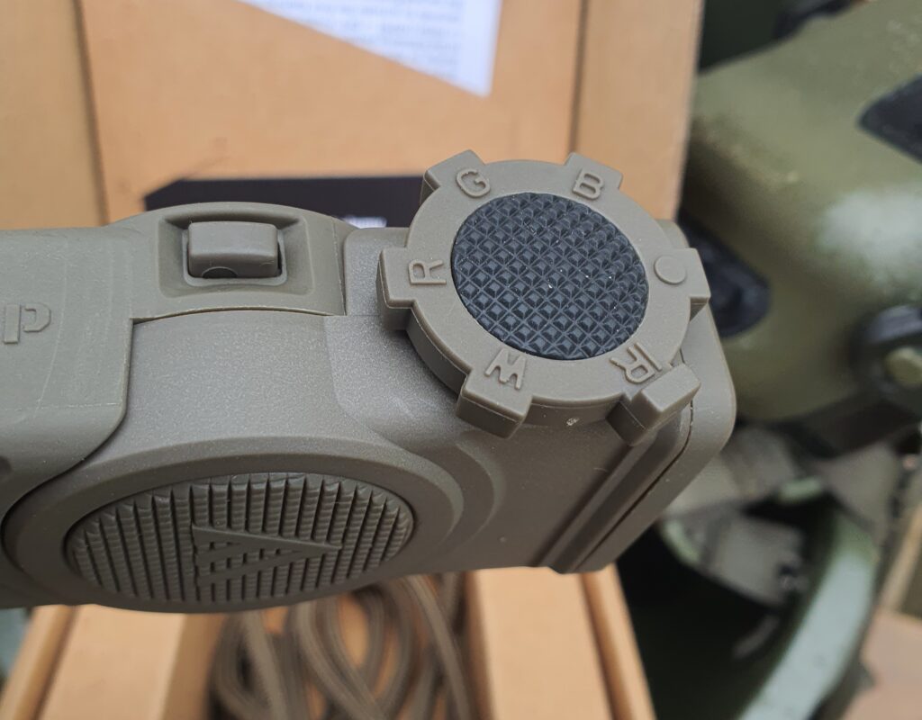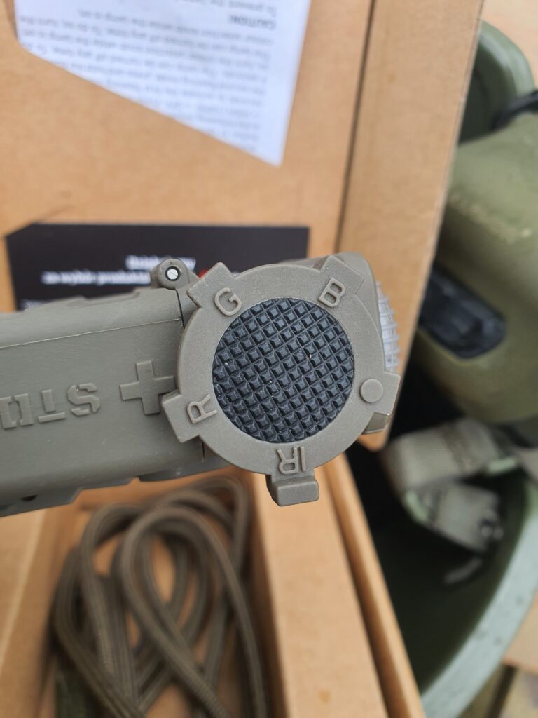 Na trybie IR pokrętło ma dodatkowy występ, dzięki któremu bez patrzenia odnajdujemy właściwe ustawienie świecenia. Po lewej stronie IR jest blokada, a po prawej, zgodnie z akronimem WRGB, przełączamy kolejność kolorów.
