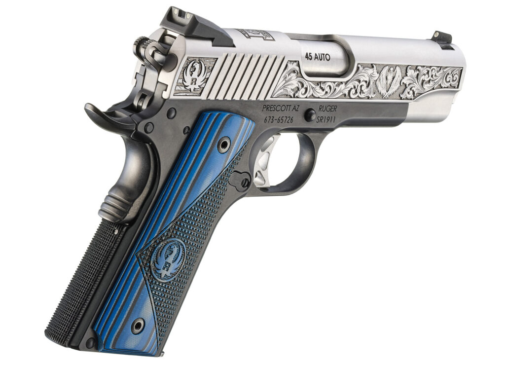 Amerykański pistolet? Pierwsze co przychodzi na myśl, to pocziwy 1911. W dostawie znajdzie się klasyczny SR1911 z przyrządami typu Novak (.45 ACP, 6700) oraz kompaktowy SR1911 Commander z grawerowanym zamkiem, wykończeniem dual-tone oraz czarno-niebieskimi okładkami.