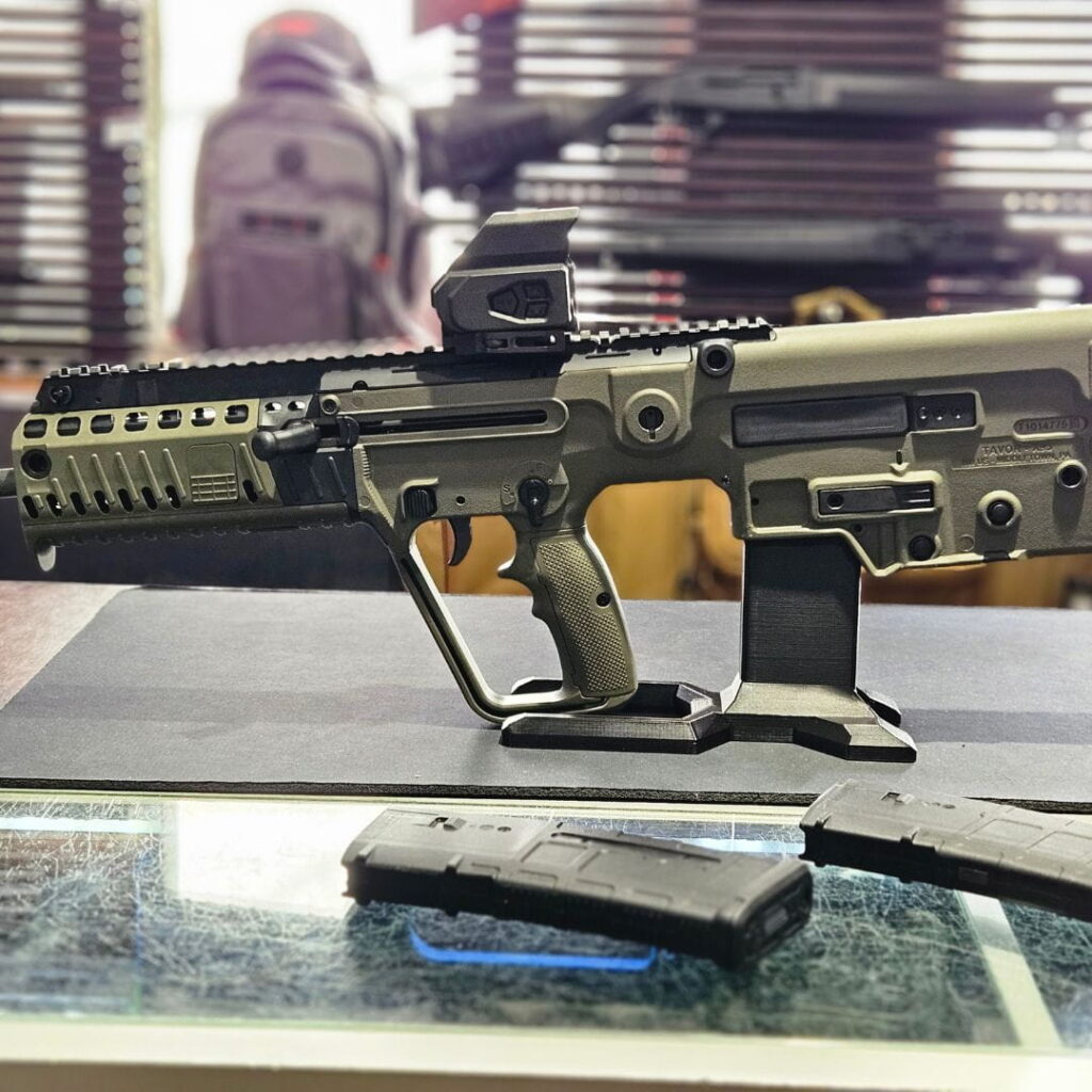 Uniwersalny stojak o przeznaczeniu poza szafą, dostosowany do trzymania konstrukcji wykorzystujących standardowe magazynki rodziny AR-15. Dostosowany do różnych konstrukcji, w tym bezkolbowych. Stojak kosztuje 120 zł i standardowo dostępny jest w kilku wersjach kolorystycznych – możliwe są także inne kolory na specjalne zamówienie.