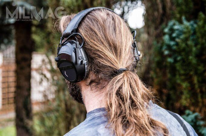 I sporo, i niewiele. Niewiele, ponieważ ochronniki dobrze tłumią odgłosy wystrzałów. Tutaj naprawdę nie sposób się do czegoś przyczepić. Nawet podczas strzelania z dużych kalibrów, z głową blisko źródła dźwięku, ochrona była zawsze zadowalająca. Sporo, ponieważ elektronika odpowiadająca za przenoszenie dźwięku to majstersztyk. Wystające poza obrys mikrofony bardzo dobrze zbierają dźwięk. Istotne jest połączenie obydwu ochronników. Dzięki temu mamy dźwięk pełny, żeby nie powiedzieć trójwymiarowy. Bez wysiłku można się zorientować skąd dobiega i słychać różnice w natężeniu danego odgłosu. Chciałoby się powiedzieć dolby surround. Wspomniane w części technicznej mikrosekundy czasu reakcji faktycznie słychać. Nie ma uciętych dźwięków innych niż strzały i nie występuje echo. Mimo łupiącego w tle karabinu do użytkownika dotrze każde słowo. Dodatkowo ci, strzelający na otwartych strzelnicach, na pewno docenią wspomniane wcześniej gąbki. Wyeliminowanie szumu wiatru robi zauważalną różnicę.