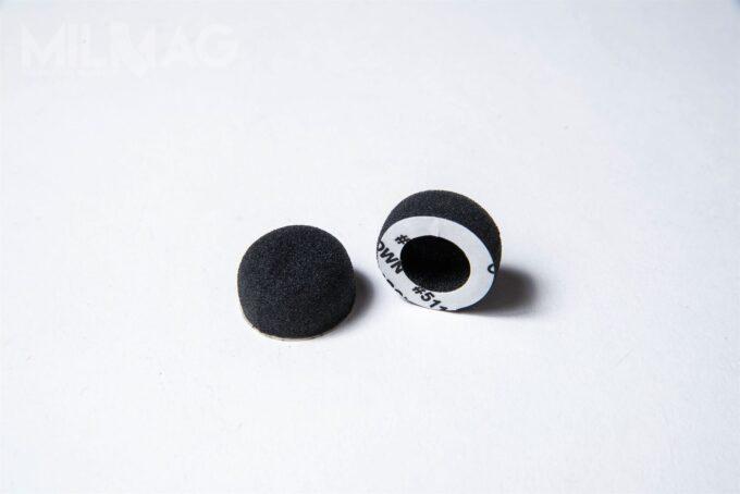 Gąbki do redukcji szumu wiatru są podklejone taśmą samoprzylepną. Wystarczy oderwać zabezpieczenie i już można je mocować do ochronników