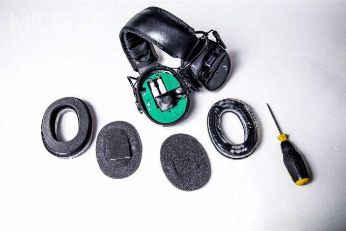W zestawie załączono baterie więc ochronniki wydają się gotowe do pracy bezpośrednio po wyjęciu z pudełka. To złudne wrażenie, gdyż najpierw należy je wyregulować. Zakres tejże jest bardzo duży. Obejmuje nie tylko regulację góra-dół (oddalenie obudów od pałąka), ale przede wszystkim kąt z jakim obudowy przylegają do głowy. Jest to istotne z dwóch powodów. Pierwszym z nich jest komfort. Siła z jaką ochronniki są dociskane do głowy rozkłada się równo, nie powoduje więc uczucia punkowego nacisku. Drugi powód to szczelność wynikająca z równomiernego docisku na obwodach kopuł i co za tym idzie, lepsza ochrona słuchu. Niemniej konstrukcja MePaBlu Silencer Plus wymaga od użytkownika poświęcenia czasu na dostosowanie ochronników do kształtu i wymiaru głowy. Biorąc pod uwagę, że warto wprowadzić kolejne poprawki po kilku godzinach użytkowania, gdy już czuć jak leżą na głowie, ten czas na dostosowanie robi się odczuwalny. Natomiast po wyregulowaniu leżą jak przysłowiowa rękawiczka. Komfort jest bardzo wysoki. Nawet po wielu godzinach użytkowania nie czuć nacisku na skronie. Dotyczy to także noszenia okularów. Nie tylko strzeleckich o cienkich nausznikach, projektowanych z myślą o noszeniu wraz z ochronnikami słuchu, ale też zwykłych korekcyjnych. Szczególnie błyszczą tutaj nakładki żelowe. Dodają całkiem nowy poziom komfortu, niespotykany w ochronnikach bez tego akcesorium.