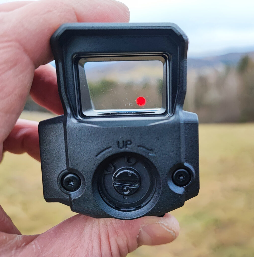 Przystrzeliwanie celownika przeprowadza się za pomocą dwóch dużych pokręteł umiejscowionych z prawej strony (zmiana położenia punktu celowniczego w poziomie) oraz z tyłu (zmiana położenia punktu celowniczego w pionie) korpusu. Każde kliknięcie powoduje przesunięcie punktu celowniczego o 1/2 MOA. Średnica punktu to 2 MOA. Za zasilanie celownika odpowiada jedna bateria CR123, która według danych podawanych przez producenta pozwala na około 10 tys. godzin ciągłej pracy na średnim poziomie jasności.