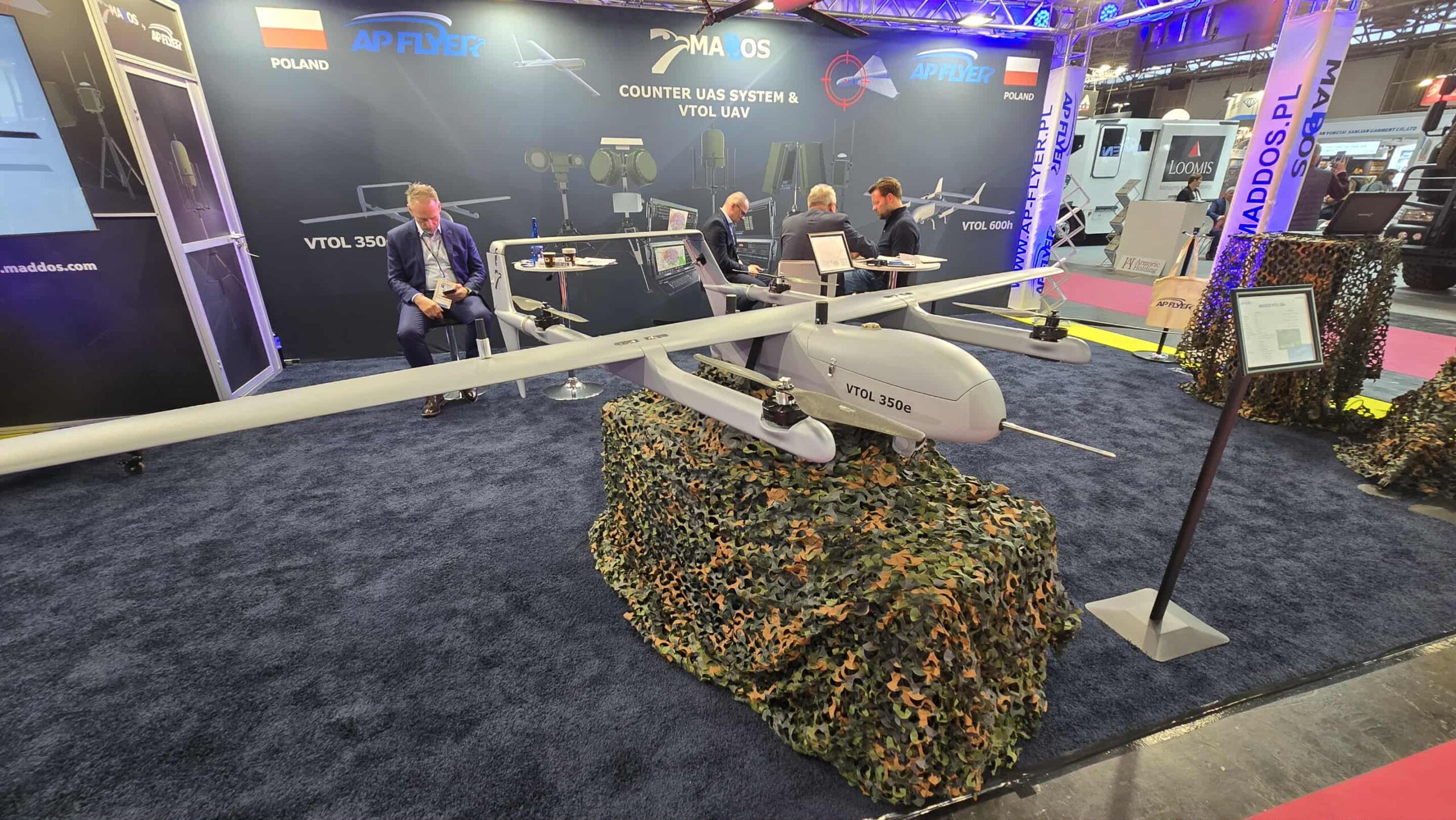 Na wystawie pokazano egzemplarz w pełni elektrycznego bezzałogowego statku powietrznego pionowego startu i lądowania typu VTOL 350e. Jest to najmniejszy bezpilotowiec z rodziny MADDOS w ofercie spółki. Ma 3,5 m rozpiętości skrzydeł i maksymalną masę startową 22,5 kg (z czego 2 kg to masa ładunku użytecznego).