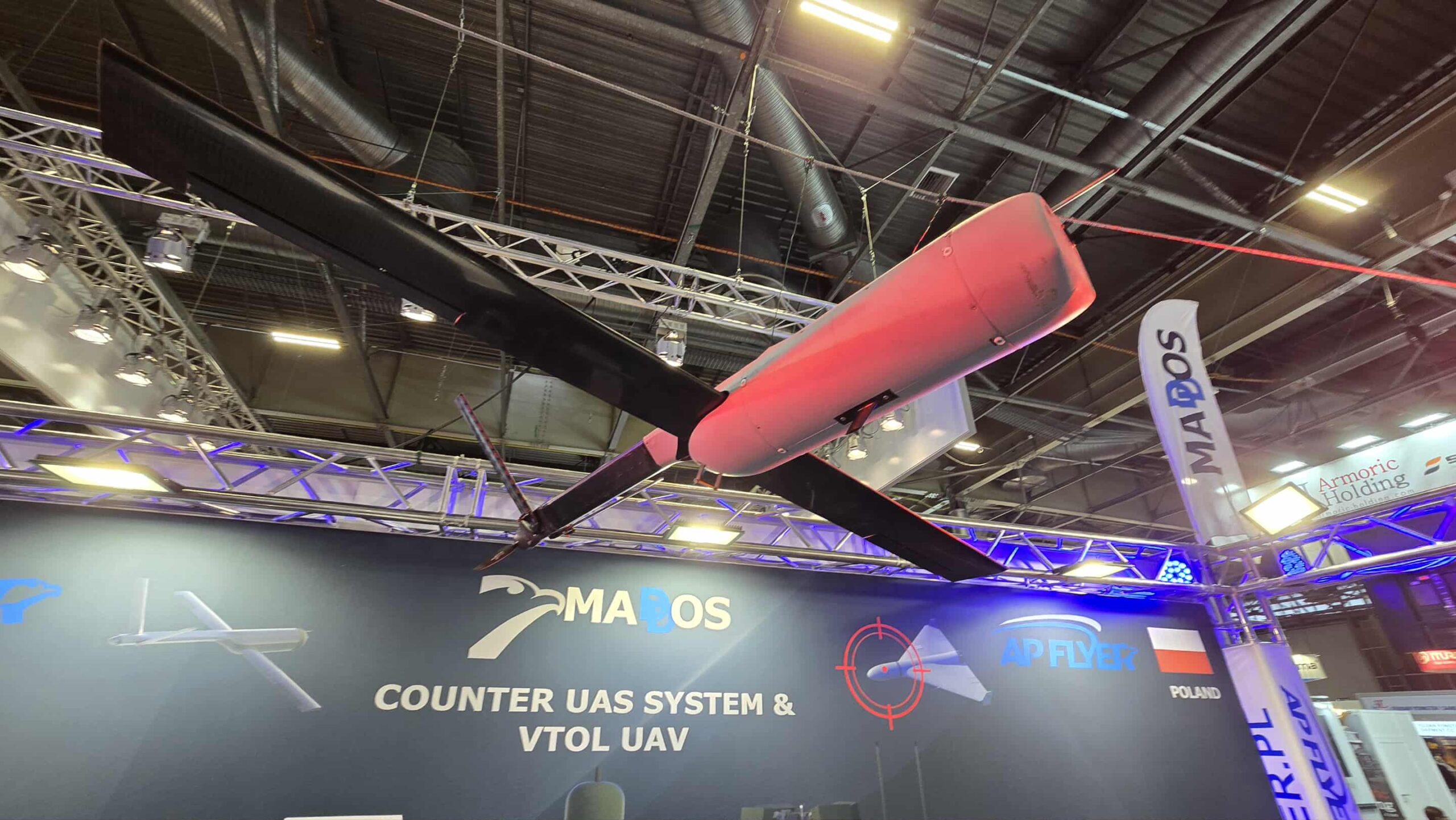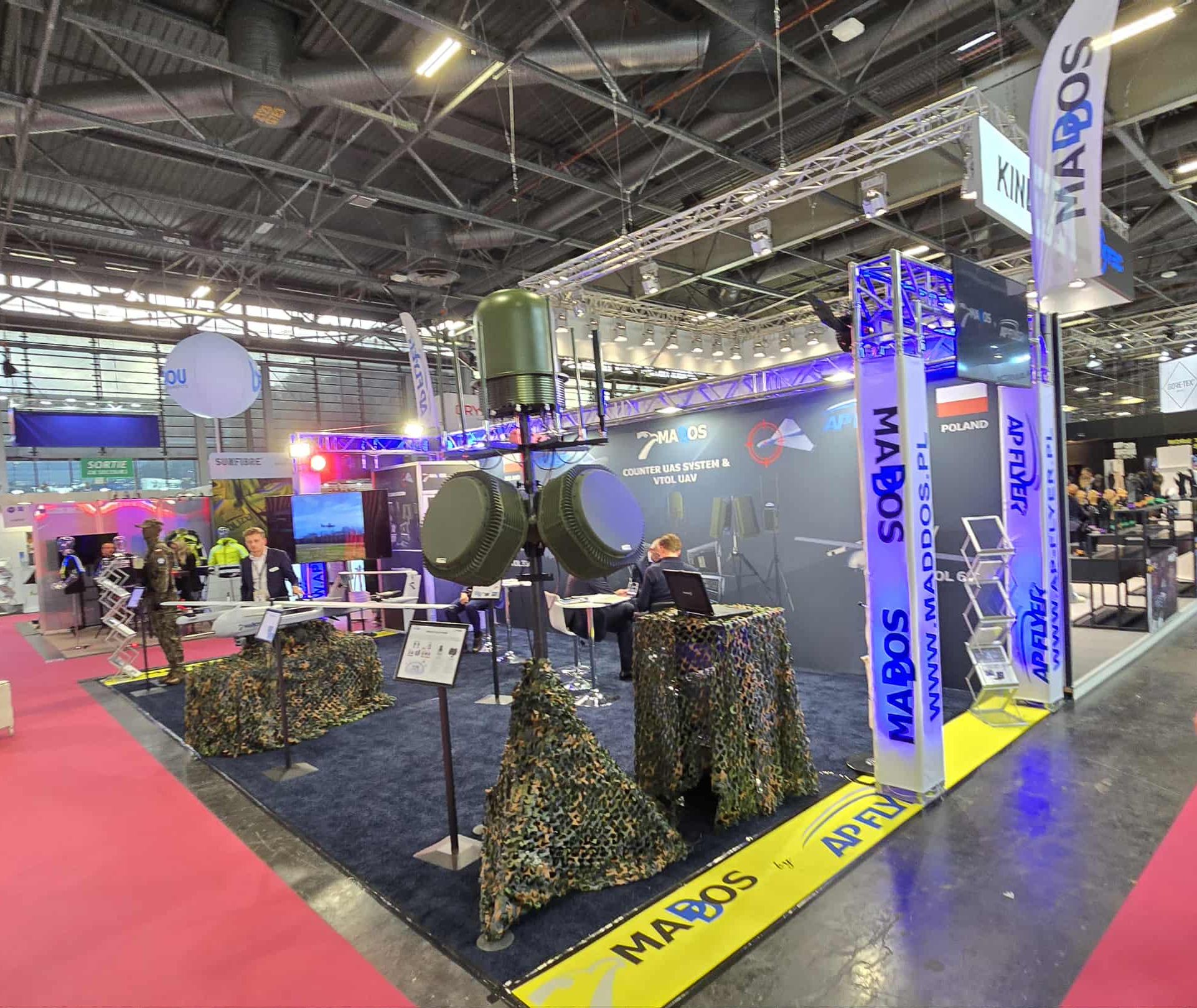 Spółka AP-Flyer z Warszawy zaprezentowała kilka rozwiązań z zakresu zarówno systemów bezzałogowych oraz przeciwdronowych o wspólnej nazwie MADDOS (Multi-sensor Automatic Drone Detection & Observation System).