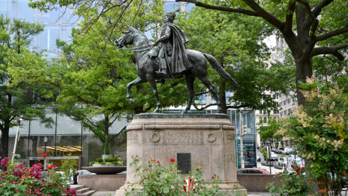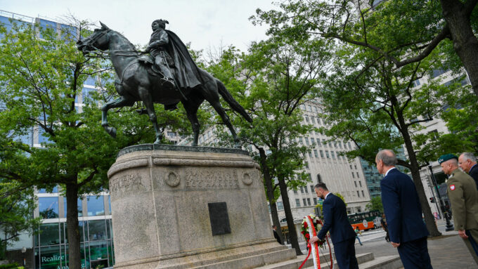 Wicepremier W. @KosiniakKamysz: Jesteśmy pod pomnikiem Pułaskiego, bohatera walki o wolność – za naszą i waszą. Te ideały Kościuszki i Pułaskiego są wciąż aktualne. One są fundamentem historycznym, ale dzień dzisiejszy buduje najsilniejsze relacje polsko-amerykańskie.🇵🇱🇺🇸 pic.twitter.com/k7Y4qmPZAH