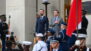 Jednym z najważniejszych punktów naszej rozmowy było tworzenie spółek joint venture, polsko-amerykańskich, które będą mogły inwestować w Polsce, inwestować również na Ukrainie, produkować najlepszy sprzęt na terytorium Rzeczypospolitej. Jest wielka otwartość i przychylność dla tego projektu – jest zgoda na projekt polsko-amerykański joint venture, spółek zbrojeniowych inwestujących w technologię podwójnego zastosowania. Polska przechodzi na wyższy poziom stosunków polsko-amerykańskich. To nasz wspólny cel z sekretarzem obrony – żeby nie tylko zakupy, ale wspólna produkcja były synonimem naszej przyjaźni. I tak się dzieje – to są namacalne efekty – zaznaczył wicepremier.