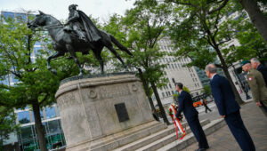 Wicepremier W. @KosiniakKamysz: Jesteśmy pod pomnikiem Pułaskiego, bohatera walki o wolność – za naszą i waszą. Te ideały Kościuszki i Pułaskiego są wciąż aktualne. One są fundamentem historycznym, ale dzień dzisiejszy buduje najsilniejsze relacje polsko-amerykańskie.🇵🇱🇺🇸 pic.twitter.com/k7Y4qmPZAH