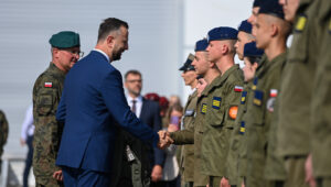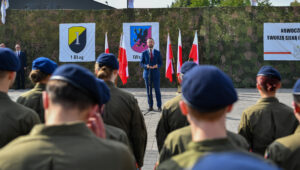 Chciałem Wam złożyć najlepsze życzenia na starcie tego roku szkolnego – żeby był bezpieczny, pomyślny, dobry. żebyście spełnili swoje ambicje, plany i marzenia. My jesteśmy z Was bardzo dumni. Polska jest z Was bardzo dumna. Dziękuję, że już od młodzieńczych lat nosicie mundury z biało-czerwoną na ramieniu. (…) Dążymy do najlepszego miejsca na świecie do życia – Polski, naszego domu. Dążymy do bezpieczeństwa dla naszych rodzin. Dążymy do tego, by żyć w pokoju. Do tego potrzebujemy siły i odwagi. Nie da się tego osiągnąć bez młodego pokolenia, bez młodych ludzi zapalonych do swojej aktywności, do marzeń, zawodów, oczekiwań i przyszłości.