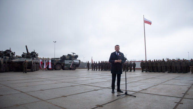 My nie przyjmujemy do wiadomości koncepcji obrony Polski na linii Wisły. Każdy skrawek polskiej ziemi ma być broniony i będzie broniony, jeśli będzie taka potrzeba. Będzie broniony dzięki żołnierzom Wojska Polskiego, którzy mają nowoczesny sprzęt i którzy są tak liczni, że będą w stanie sprostać tym wyzwaniom. Chodzi o odstraszanie agresora. Oczywiście nikt nie chce wojny, ale żeby nie doszło do wojny musimy mieć silne Wojsko Polskie. Chcesz pokoju, szykuj się do wojny. To jest ta maksyma, której jesteśmy wierni i którą wcielamy w życie. Są tacy, którzy twierdzą, że 300-tysięczne Wojsko Polskie nie jest możliwe. To nieprawda. Trzeba tylko chcieć i dążyć do osiągnięcia tego celu – podkreślił minister Mariusz Błaszczak.