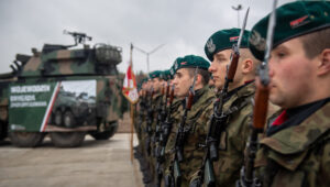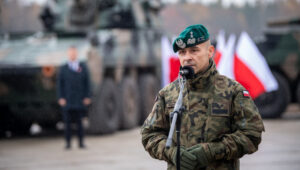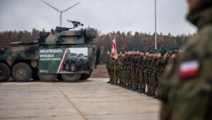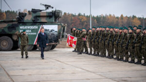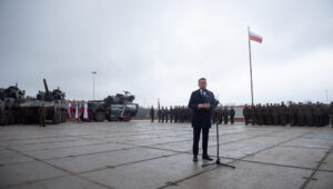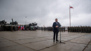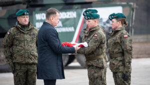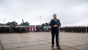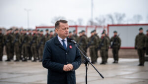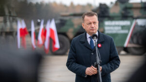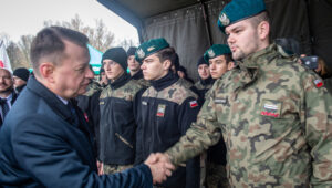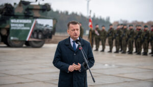 My nie przyjmujemy do wiadomości koncepcji obrony Polski na linii Wisły. Każdy skrawek polskiej ziemi ma być broniony i będzie broniony, jeśli będzie taka potrzeba. Będzie broniony dzięki żołnierzom Wojska Polskiego, którzy mają nowoczesny sprzęt i którzy są tak liczni, że będą w stanie sprostać tym wyzwaniom. Chodzi o odstraszanie agresora. Oczywiście nikt nie chce wojny, ale żeby nie doszło do wojny musimy mieć silne Wojsko Polskie. Chcesz pokoju, szykuj się do wojny. To jest ta maksyma, której jesteśmy wierni i którą wcielamy w życie. Są tacy, którzy twierdzą, że 300-tysięczne Wojsko Polskie nie jest możliwe. To nieprawda. Trzeba tylko chcieć i dążyć do osiągnięcia tego celu – podkreślił minister Mariusz Błaszczak.