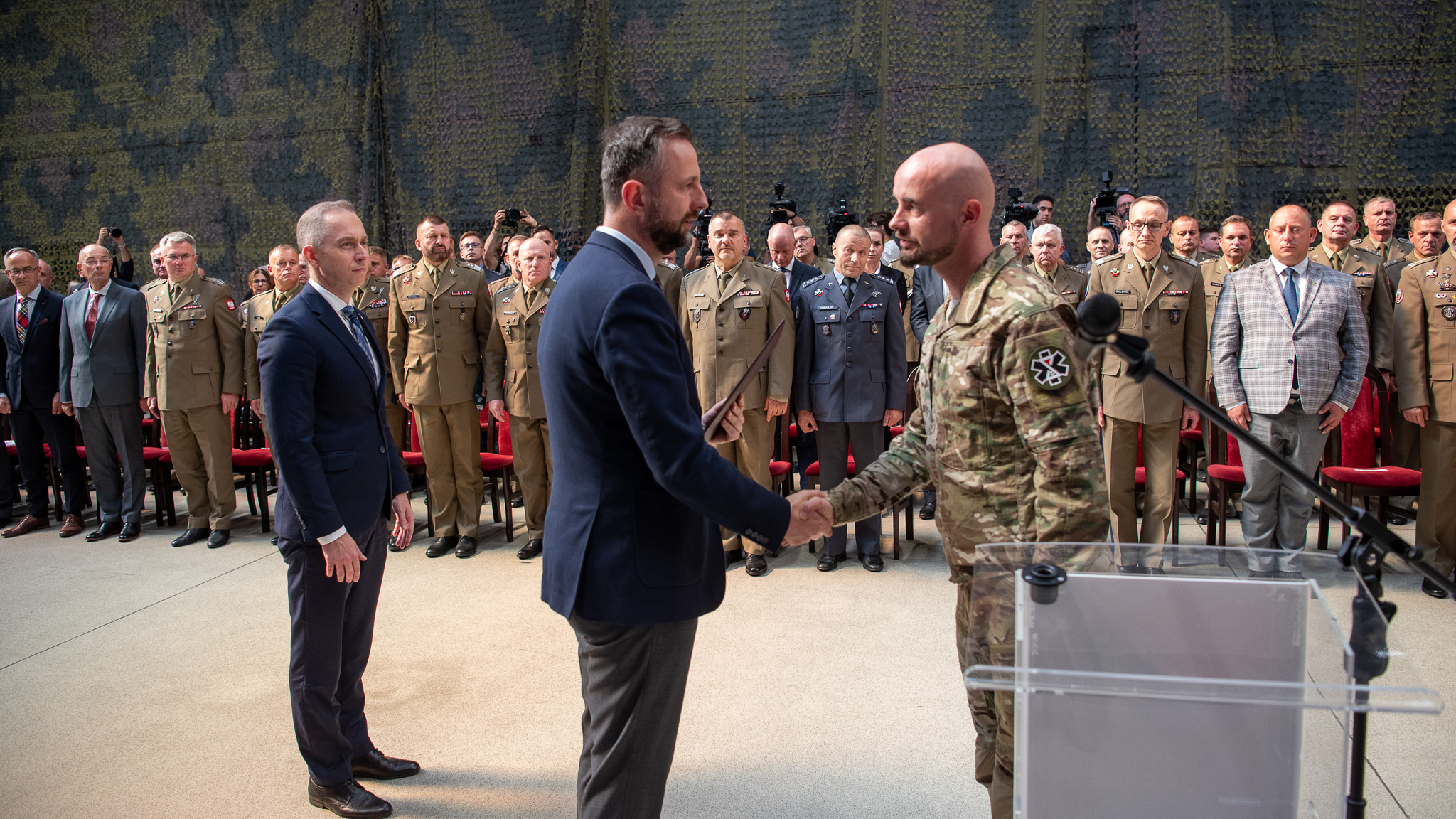 Jednym z pierwszych zadań, które zostało wyznaczone przez pana ministra, jeżeli chodzi o działania dla nas wszystkich – zarówno dla mnie, jak i dla Sztabu Generalnego – było powstanie wojsk medycznych. Cieszę się, że dzisiaj kończymy jakiś etap i zaczynamy kolejny – właśnie po to, żeby wojska medyczne mogły zacząć funkcjonować, aby razem z ministrem zdrowia, razem z wojewodami, razem z Wojskiem Polskim przygotować państwo polskie na każdy scenariusz, który może się zdarzyć. Mam też tę szczególną przyjemność, że moim szefem jest minister obrony, ale też lekarz. Myślę, że właśnie to zadanie, które było postawione przed nami wszystkimi na samym początku, również wynika z tego, by w samym centrum wszystkiego, o czym mówimy w kontekście wojska – zarówno jeżeli chodzi o wyposażenie żołnierzy, jak i kwestie dotyczące zdrowia – był człowiek. I tak właśnie jest: w centrum jest żołnierz, jego zdrowie i jego zabezpieczenie, sprzęt, w którym walczy. Chcemy, aby zdanie każdego żołnierza miało znaczenie, bo podmiotowość żołnierzy na współczesnym polu walki naprawdę ma ogromne znaczenie – podkreślił sekretarz stanu w MON, Cezary Tomczyk.