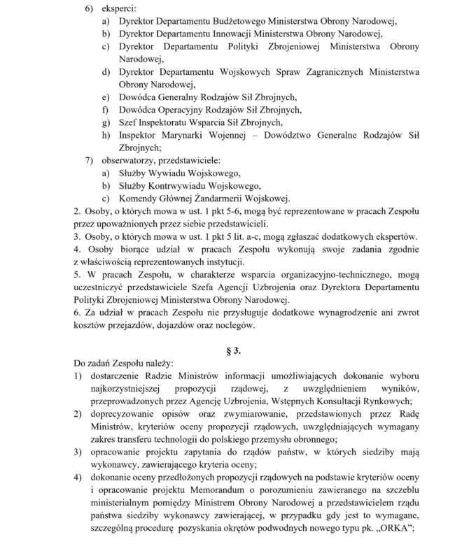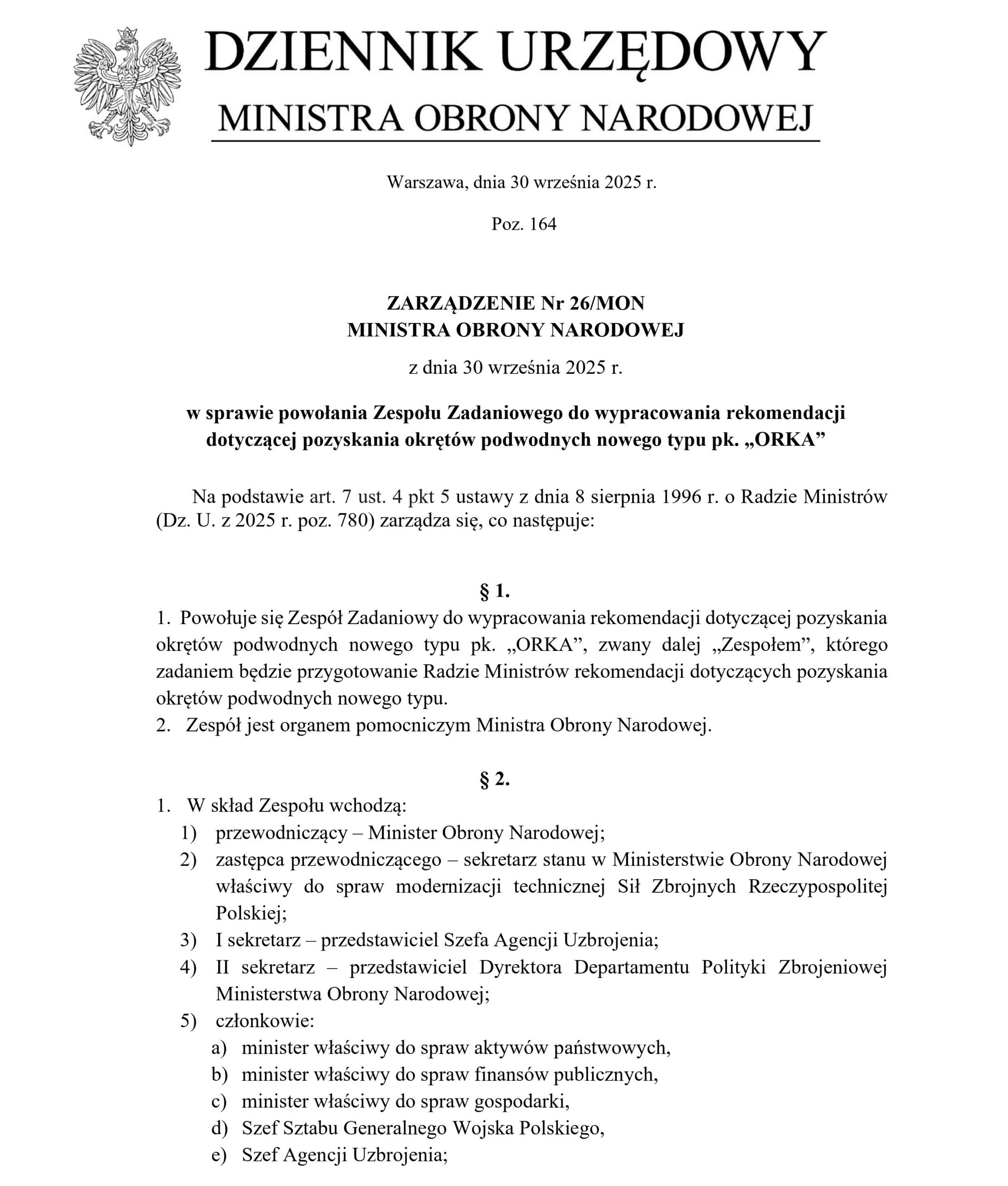 Przypomnijmy, że Zespół Zadaniowy ds. programu Orka powstał 30 września br. zgodnie z Zarządzeniem nr 26/MON jako wynik uchwały Rady Ministrów w tej sprawie z 17 września, zobowiązującej do wyłonienia dostawcy nowych okrętów podwodnych do końca bieżącego roku.
